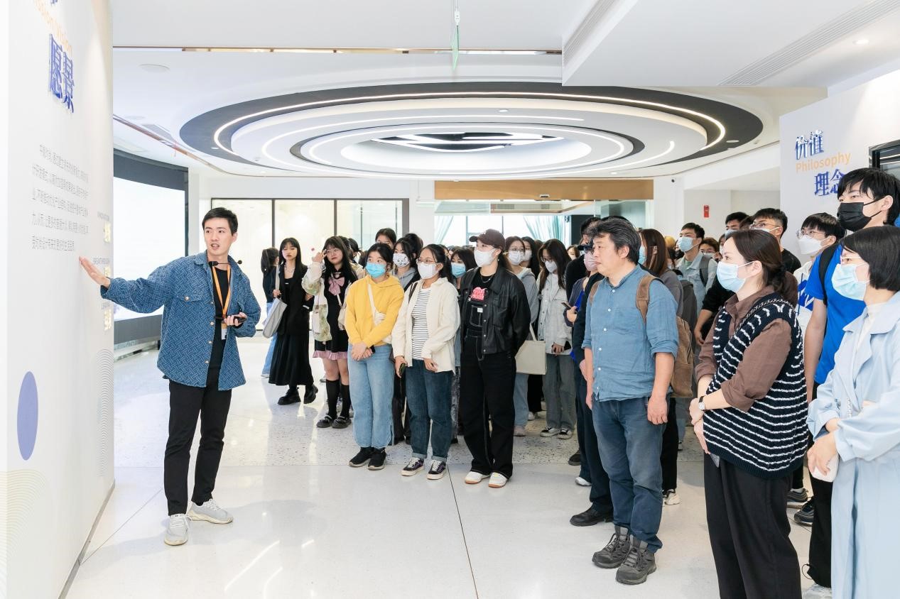当天下午,创新创业精英班(文创设计)师生前往浙江中胤时尚股份有限公司现场考察和参加讲座。公司运营总监叶超介绍了公司的价值理念、愿景、设计成果等,并介绍“为设计”原创设计师平台。中胤公司顾问、资深市场分析专家张昕博士作为校外导师,开展了《可持续设计》主题讲座,并且与同学们互动交流。