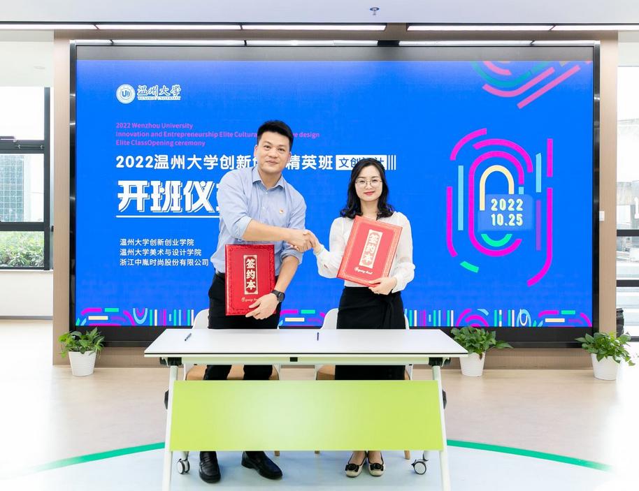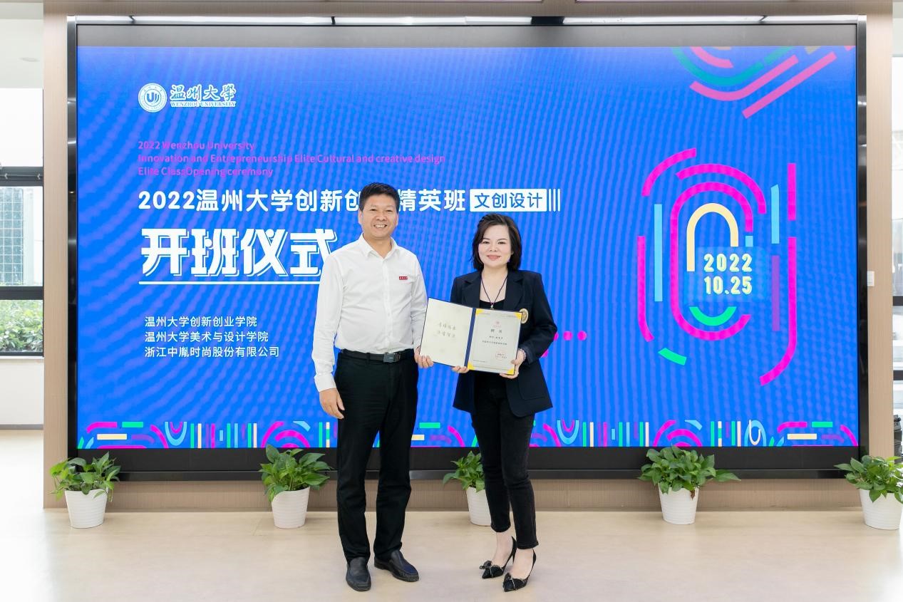 10月25日上午,3044am永利集团3044noc创新创业精英班(文创设计)在学校科技综合大楼4楼路演厅举行开班仪式,3044am永利集团3044noc党委副书记庄兴忠,浙江中胤时尚股份有限公司董事长倪秀华、副总经理童娟、人事经理王春丽,创新创业学院院长施永川,3044am永利集团3044noc院长谢子静、党委书记叶正飞等出席开班仪式,3044am永利集团3044noc副院长胡文超主持仪式。 校党委副书记庄兴忠到场见证开班仪式,并向倪秀华董事长颁发3044am永利集团3044noc创新创业导师聘书。 施永川院长发表创新创业精英班开班致辞。他介绍了3044am永利集团3044noc创新创业教育办学特色和荣誉成果,展望了校企合作举办的“创新创业精英班(文创设计)”在推广专业教育与创业教育深度融合的美好愿景。 施永川院长致辞 倪秀华董事长随后发表讲话。中胤时尚股份作为以时尚产品发展为核心的A股上市企业,与温大共建“创新创业精英班”,这是产学合作的新模式,能够推动创新开拓型人才培养,有效赋能温州时尚产业。 倪秀华董事长讲话 谢子静院长给创新创业精英班(文创设计)的代表授予班旗。 谢子静院长授班旗 随后,叶正飞书记和童娟副总经理代表校企双方签订中胤公司-3044am永利集团3044noc精英班(文创设计)共建协议。施永川院长和谢子静院长向创新创业精英班的校内外指导教师颁发导师聘书。 签订共建协议 颁发校内外导师聘书 接着,视觉传达设计系主任刘俊代表导师组宣布了精英班的文创设计创作主题,将围绕中胤企业命题、校园文创、海岛文创等三方面开展今后的设计教学。郑淇同学代表班级发言,她向校企各方提供这次宝贵学习机会,致以谢意,并表示趁着青春年华,时光正好,在今后学习中要把握机会,大胆尝试。 宣布文创设计主题 学员代表发言 最后,美术学院张洪霞同学、机电学院杨占瑞同学分别分享了创新创业项目“土日子文创产品设计项目”“云朵眼镜:一站式数字化服务平台项目”。之后,精英班同学参观了学校众创空间。 领导嘉宾与师生合影留念 当天下午,创新创业精英班(文创设计)师生前往浙江中胤时尚股份有限公司现场考察和参加讲座。公司运营总监叶超介绍了公司的价值理念、愿景、设计成果等,并介绍“为设计”原创设计师平台。中胤公司顾问、资深市场分析专家张昕博士作为校外导师,开展了《可持续设计》主题讲座,并且与同学们互动交流。 叶超总监带领师生参观企业 张昕博士开展讲座 精英班学员合影留念