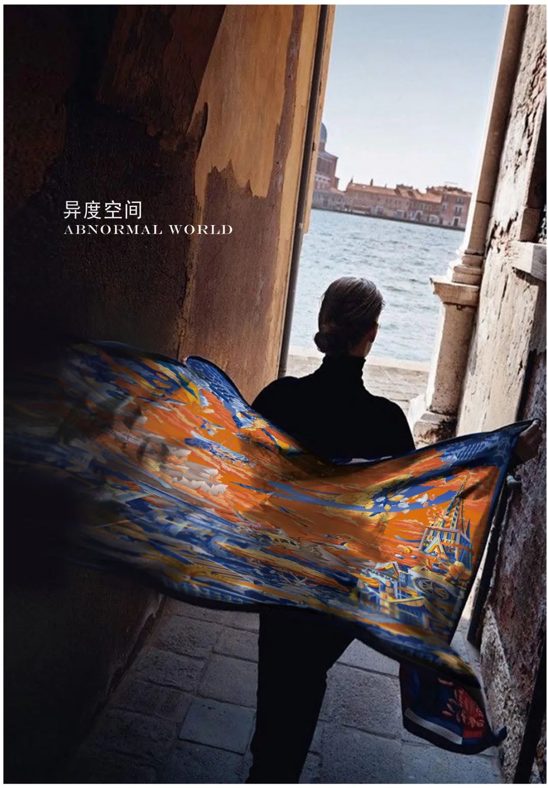 创新设计,智造未来。历届“市长杯”中国(温州)工业设计大赛聚焦温州“5+5”产业体系,挖掘设计新理念,涌现了大批优秀作品与设计师。《异度空间》丝巾原创丨设计师:罗明军绘画作品产生灵魂是画家对生活对社会对自然经过自己的感知通过意识控制笔墨而重新塑造的画中天地万物而没有经过学习经过历练经过感悟而产生的作品就是一幅画而已I市长杯作品《异度空间》《异度空间》灵感来源于人类主要文明提现“世界建筑遗产”,世界建筑遗产是人类智慧的结晶,在人类文明史上占有非常重要的地位。但随着人类无止尽的贪婪与破坏,让大自然遭到史无前例的破坏,台风、海啸、火山爆发等自然灾害愈发严重。这些“大自然的惩罚”造成世界上越来越多的世界建筑遗产彻底毁灭。历史悠久的巴黎圣母院也因自然原因造成严重火灾事故、产生巨大的人类文化遗憾与经济损失。据此一系列与其影响为灵感方向,构想人类破坏后所产生的失重世界状态,世间万物以异常的形态分崩离析与正常的世界形态产生鲜明对比。以此呼吁社会保护自然、尊重自然也同样是在保护世界遗产、保护人类文明。作品累积号是8个月时间将巴黎圣母院,圆明园,雅典古城等元素进行提炼和转化,以失重异常的状态进行视觉表现给予观者强烈的视觉冲击这种与众不同的视角和表现方法,使异度空间作品在设计上的巨大亮点。当然设计只有依附于精湛工艺,才能得到充分发挥,因此实地打样与面料选择成为了异度空间作品的必修课。作品在设计的过程中,材料色彩和构图采用一花两色的效果,通过折叠就能产生两种不同的佩戴体验,但是两种完全相撞的颜色便意味着印花工艺的高要求,因此在食物的制作过程中,首先遇到的难题便是是色彩得不到充分发挥,为了改善颜色问题,作者对两幅丝巾上的所有色彩,用潘通色卡进行一对一打样来降低色彩的问题,以此满足工业化批量生产的同时又符合高标准的审美需求,作品从40余种不同厚度质感与卷边工艺的成品小样中进行试戴水洗等测试,最终确定的斜纹绸面料不公是光泽还是硬度都达到最佳。