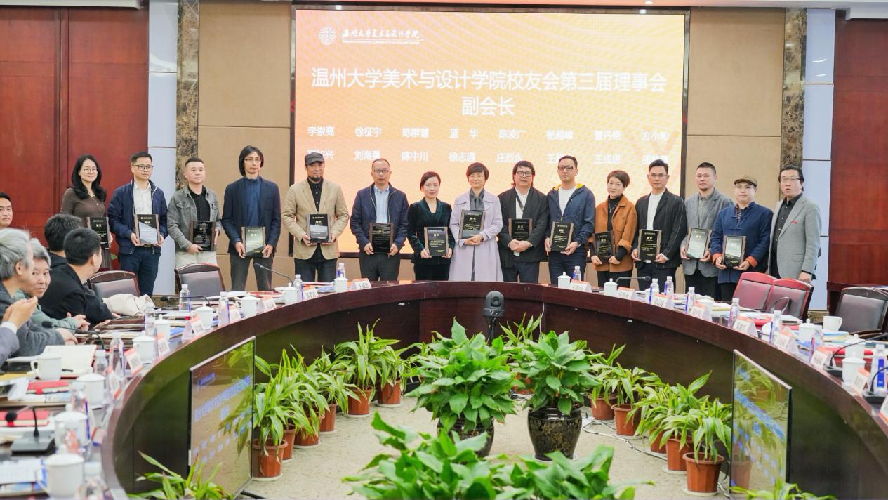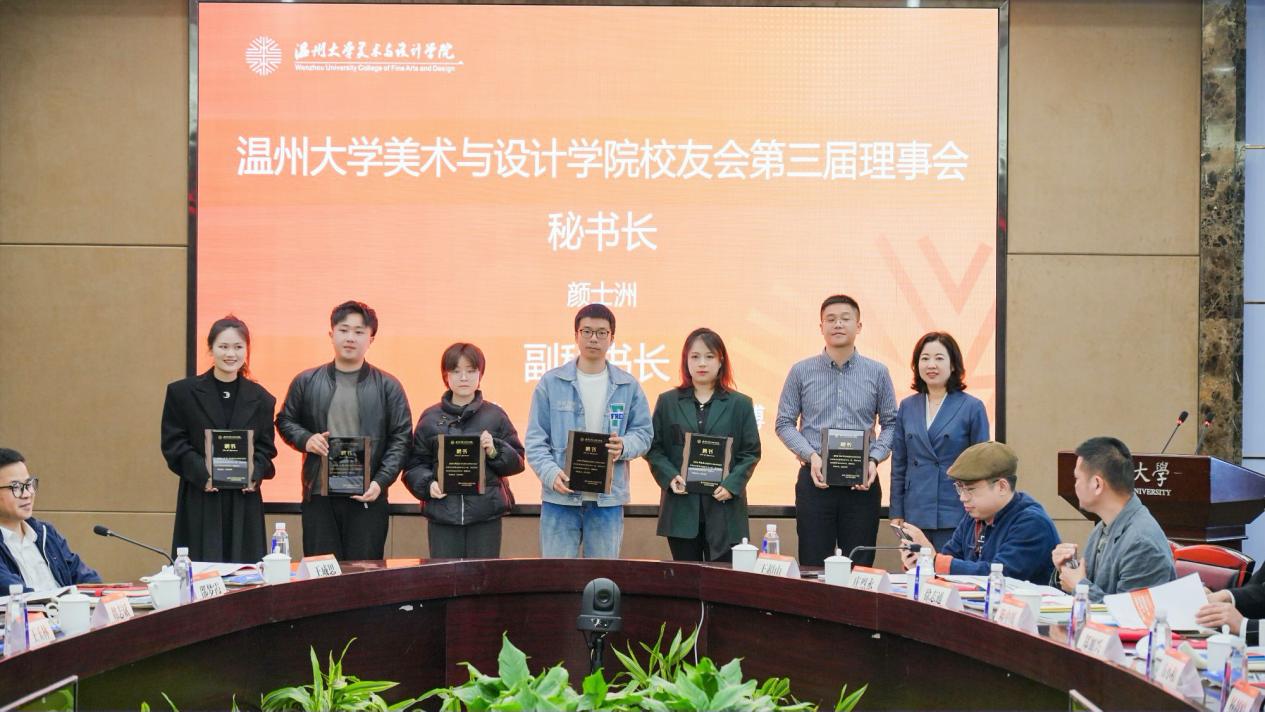 大会审议通过了《3044am永利集团3044noc校友会章程(修订)》(草案)和《3044am永利集团3044noc校友会第三届理事会建议名单》。会议选举产生了第三届理事会理事,91届校友金纬当选第三届理事会会长、14届颜士洲校友当选第三届理事会秘书长。本次换届为温大美院校友工作的长期可持续发展奠定了坚实基础。在聘任仪式上,学校、学院领导为新任会长、副会长、理事、秘书长、副秘书长颁发聘书。