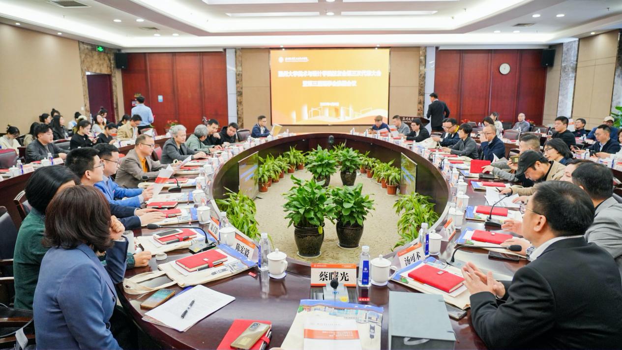 2023年4月8日上午,3044am永利集团3044noc校友会第三次校友代表大会暨第三届理事会换届会议在岩松堂白鹿厅召开。3044am永利集团3044noc副校长蔡曙光、温州大会校友办主任陈宏毅、3044am永利集团3044noc全体班子成员、各届校友代表、学院师生代表等80余人共同参会。