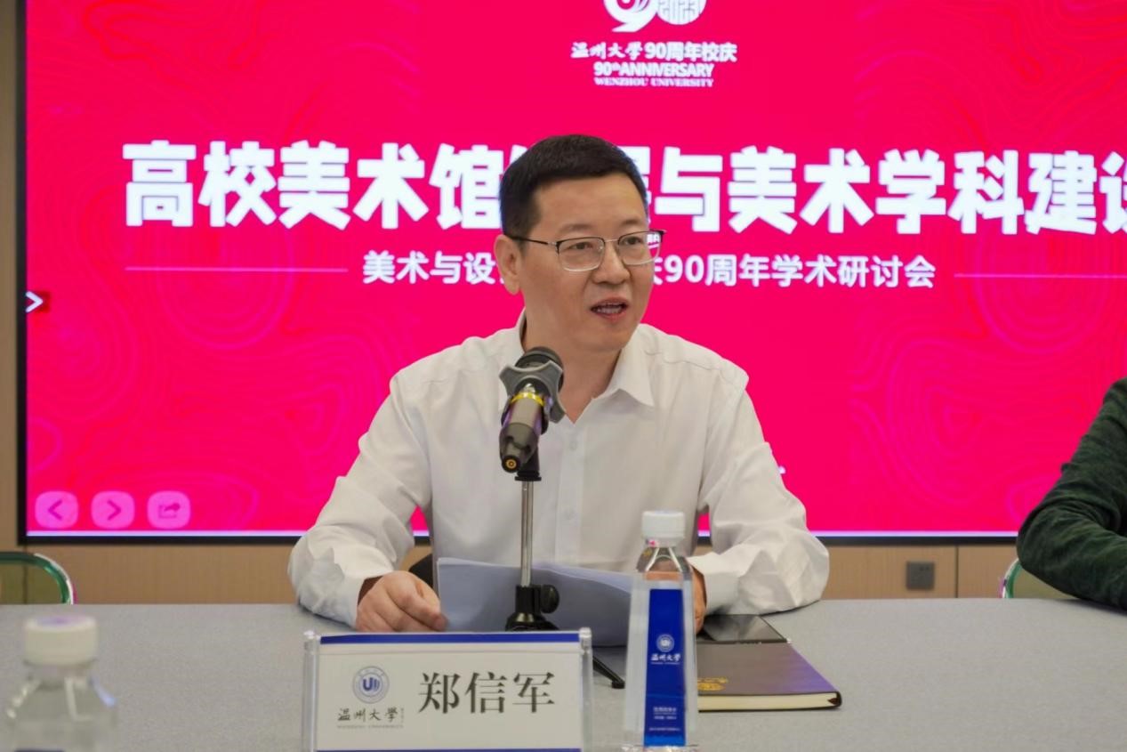 郑信军部长致辞,3044am永利集团3044noc美术教育的人文底蕴、学科实力、师资力量以及人才培养质量在全省乃至全国均有较大影响力。高校美术馆依托高校,面向教学,成为高校学科建设和教学科研的发动机和有力的推动者。他期待各位专家教授积极为温大美术馆发展建言献策,推动我校美术学科向一流学科迈进。