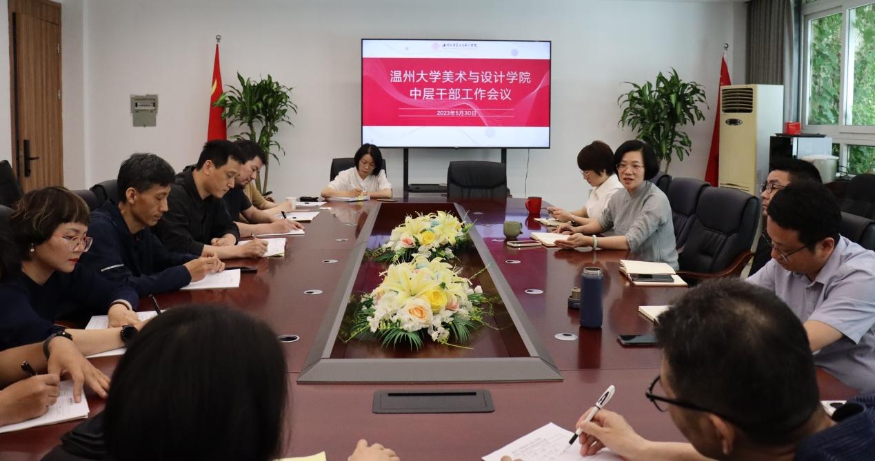 5月30日,永利集团官网中层干部会议在美术楼216会议室顺利召开,院长谢子静、副院长胡文超、顾任飞、学院党委副书记叶如芳出席会议,学院科室负责人、系主任、教研室主任及内设机构负责人参加会议。会议由谢子静院长主持。 会上,与会人员就前阶段各系部在人才引进、学科发展、专业建设、人才培养以及服务地方等方面取得的业绩成果及举措进行了汇报,并就下一步的工作计划及存在的困难进行了交流。 随后,各分管领导就学院学科科研、专业建设、人才培养、师德师风、安全保障以及毕业生系列工作进行强调,要求中层干部在确保常规工作有序进行的同时,重点部署并带头落实年度目标任务,争创更多更高质量的标志性成果。 最后,谢子静院长作总结讲话。谢院长高度肯定了永利集团官网近期取得的丰硕成果,并对中层干部在学院发展过程中发挥的先锋作用表示由衷地感谢。在过去的一个月里,学院举行了系列意义重大且影响广泛的大型活动,如毕业作品展演、办学90周年美术作品展、校友换届大会等系列校友活动,全员教工凝心聚力,踔厉奋发,克服重重困难,使得各项活动得以圆满开展,赢得了社会各界得广泛赞誉,这也是美院师生“崇文 尚美 精艺”精神的集中体现,希望全院教工继续发扬院训精神,为学院各项事业再攀高峰而不懈奋斗。同时,谢院长表示,各系部提出的存在的实际困难和意见建议,学院班子会认真研究后,再逐一解决和答复。