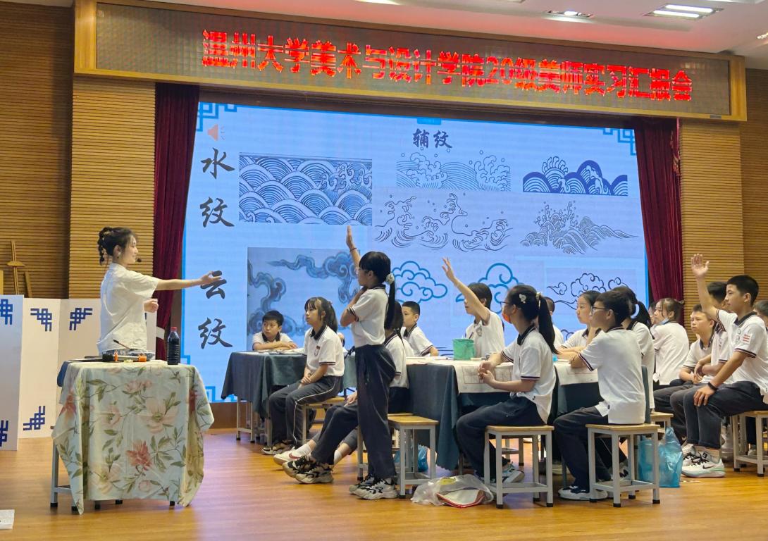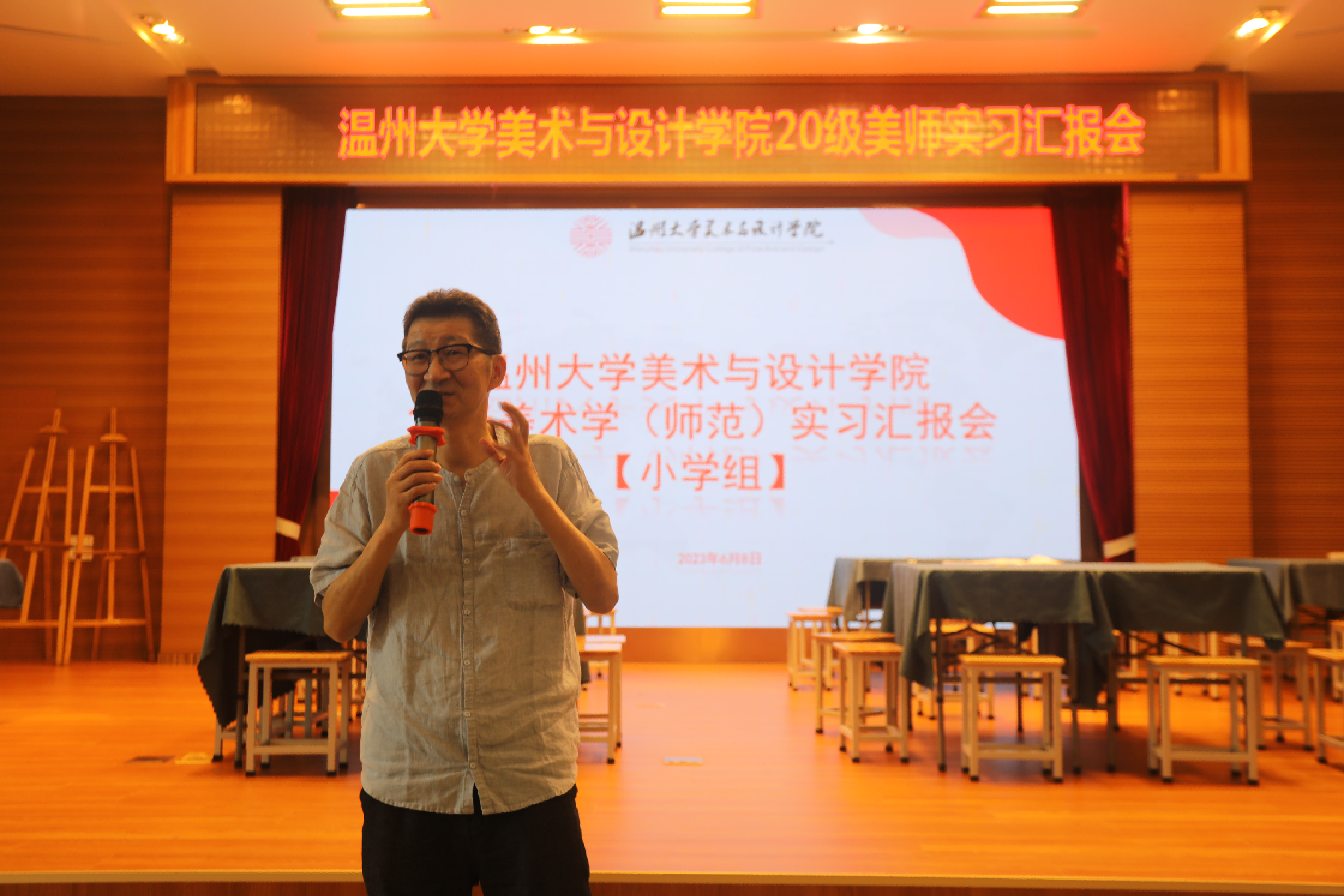 紧张又充实的实习生活已经落下帷幕,在近两个月的时间里,20级美师的同学们经历了从学生到教师的角色转换,初尝了身为一名教师的酸甜苦辣,也渐渐领悟了教书育人的真正含义。为了认真总结教育实习过程中的经验和不足,实习生们迎来了隆重的小学场实习总结汇报会。 6月8日,3044am永利集团3044noc美术学(师范)专业2020级教育实习汇报会·小学场在马鞍池小学报告厅准时召开。3044am永利集团3044noc副院长胡文超、温州市马鞍池小学校长林大康、美院实习导师胡建南、黄良珽、楼晓勉、谢艳芳、陈昭庭、王晶等老师,以及籀园小学、马鞍池小学、南浦小学各校区的指导老师,2020级美师专业的全体本科生、研究生出席了本次大会,大会由20级美师2班黄章铭、姚子昂主持。 嘉宾发言 会议伊始,胡文超副院长对嘉宾和指导老师们的到来表示热烈的欢迎,对同学们成功地完成了两个月的实习任务表示了欣喜和祝贺。接着林大康校长指出在这两个月的实习中,见证了同学们的收获与成长,也祝贺同学们在实习中有很大的收获。 实习生代表发言 随后,由实习生代表王浩宇进行汇报总结,他带来了不同校区的同学们精心制作的实习视频,生动有趣的画面一下子就引起了同学们的兴趣。他分享了不同校区中实习经历的点滴,表达了对实习指导师们辛勤指导的感激,以及本次实习对自己重大的意义。 各校区实习汇报 接下来便进入了实习的展示汇报环节,每所实习校都为我们带来了精彩纷呈的课堂。第一节课由马鞍池小学的实习生代表张子璇带来三年级上册《中国彩陶》。课程从感受两种不同的陶瓶:看一看,摸一摸,对比两种瓶子的不同作为导入,接着设置复原彩陶碎片活动,一起看看7000多年前的陶器,从器形、花纹等方面,引导学生更进一步地了解彩陶文化。 第二节课由籀园小学的实习生代表郭一瑄带来三年级下册的《门票设计》。课堂导入用一张照片来引出门票,引起学生们的兴趣。中间过程让学生们进行连一连小游戏,增加课堂的趣味性。再让学生做一位小小设计师,亲手制作属于自己的门票版式,充分挖掘学生的自主设计创意! 第三节课由南浦小学西校区的实习生代表赵梦洁带来六年级上册的《金银器》。课程开始由南浦小学的实习生们为大家带来了一段情景片段,以此展开金银器的课题,一起去感受传统金银器的独特美感和华丽。 第四节课由南浦小学南校区的实习生代表杨铭带来六年级下册《青花瓷》。古老的文明赋予了青花瓷千年的神韵,彰显出传统文化的博大与精深。本课从周杰伦《青花瓷》导入,制造优美的意境进行揭题。引导同学们跟着歌曲进入青花瓷的艺术之旅,从了解青花瓷的发展史开始,让学生在探究青花瓷的历史过程中学习青花瓷纹饰特点、寓意表达、器型样式,从而获得对青花瓷的审美认知和对历朝历代的文化理解。 名师评课 汇报课结束之后,胡建南老师 、林大康老师进行了现场评课,两位老师对各位实习老师的汇报表示肯定,同时也提出了需要改进的地方。 留影合念 实习是一次将所学理论知识转化为实践的机会,通过这段实习经历大家都受益匪浅,实习虽已落下帷幕,但祝愿20级美师全体同学们都能千山万水,不负理想,不忘初心,拨云见日,未来可期! 本次与实习汇报会一同进行的还有优秀实习作业展,展示了20级美师同学在实习过程中的优秀板书、学生作品,展览布置有新意,呈现了优质的教学成果!