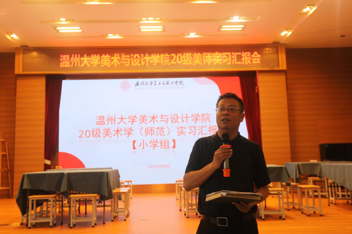 6月8日,3044am永利集团3044noc美术学(师范)专业2020级教育实习汇报会·小学场在马鞍池小学报告厅准时召开。3044am永利集团3044noc副院长胡文超、温州市马鞍池小学校长林大康、美院实习导师胡建南、黄良珽、楼晓勉、谢艳芳、陈昭庭、王晶等老师,以及籀园小学、马鞍池小学、南浦小学各校区的指导老师,2020级美师专业的全体本科生、研究生出席了本次大会,大会由20级美师2班黄章铭、姚子昂主持。