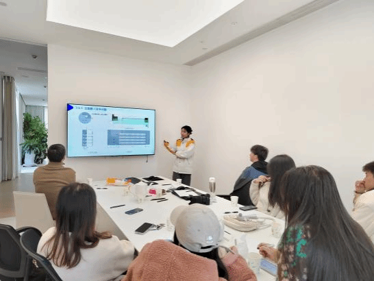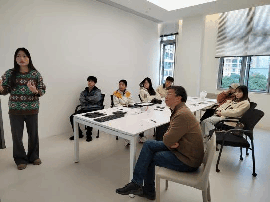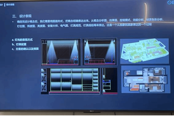灯光实验室参观完毕后,同学们在公司的小型会议室里轮流展示自己设计的女装商店灯光设计方案,邓雄文董事长一一为大家进行了耐心细致的点评,并鼓励同学之间互相寻找方案的问题所在。在邓总的鼓动下,大家开启了头脑风暴,现场气氛轻松而热烈,不知不觉时间就临近下午,同学们都感到收获颇丰。
