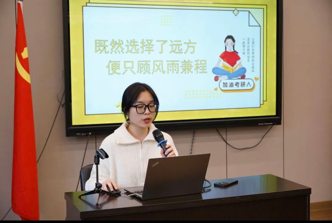 会上,永利集团官网2023届研究生方晨从院校选择、学习方法和心态调整等方面分享了自己的备考经验,并鼓励学弟学妹们坚定信念,一路向前。