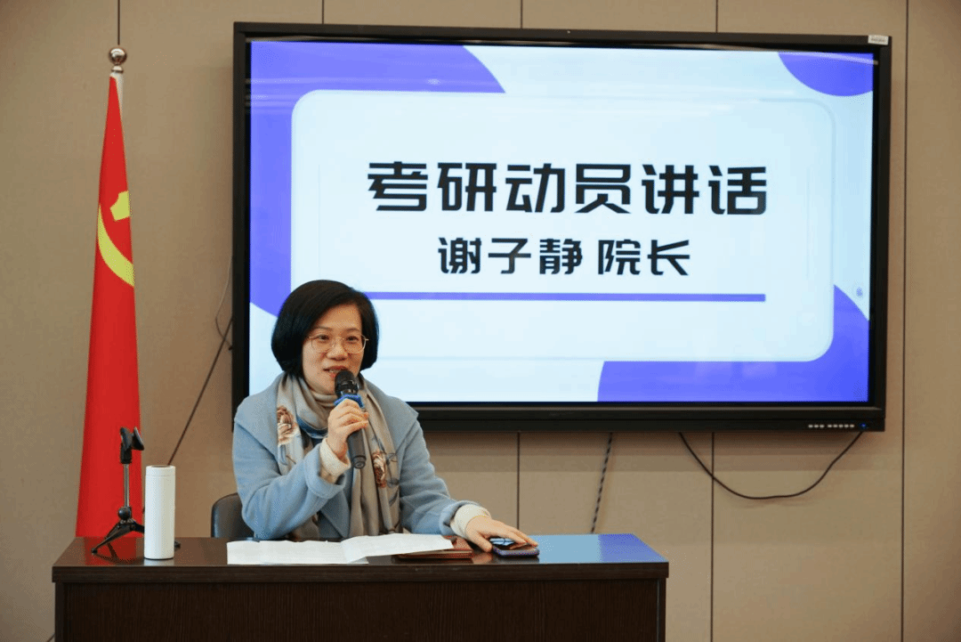 2025届考研动员大会上,谢子静院长发表动员讲话,院长首先结合历年考研统计数据,分析了考研面临的新形势。其次,她从不同层面强调了考研的重要意义,包括国家层面对研究生教育的重视与推进,专业层面通过深造才能更好地满足社会需求,个人层面争取向上发展的空间,提升个人就业竞争力的必要性。最后,谢院长希望同学们早选择,尽早准备,在考研的道路上坚定前行,让青春在奋斗中绽放绚丽之花。