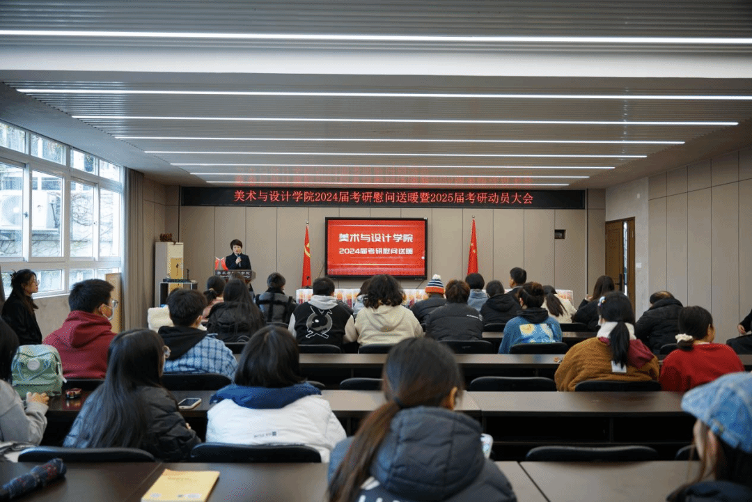 为鼓舞考研学生士气,缓解考研心理压力,同时,为了帮助即将备考的学生了解考研基本情况,树立考研信心。12月13日下午,永利集团官网举行了2024届考研慰问送暖暨2025届考研动员大会。学院领导班子出席,会议由党委副书记叶如芳主持,2024、2025届考研学生参加。考研慰问活动环节,谢子静院长表达了对即将参加考试学生的关怀和慰问。她表示,一年一度的全国硕士研究生统一招生考试已经进入冲刺阶段,备考一路走来充满充满艰辛与坎坷,最后时刻,希望同学们能稳定心态,调整好身体状态,勇往直前,坚定必胜决心,预祝同学们都能考研成功。活动中,学院领导为同学们分发了“考研大礼包”,表达了学院对考研同学的关心关怀,为同学们加油打气,振奋精神。十二月好事正酿,相信有学院的保驾护航,考研学子们定能旗开得胜,心想事成,一战成硕!2025届考研动员大会上,谢子静院长发表动员讲话,院长首先结合历年考研统计数据,分析了考研面临的新形势。其次,她从不同层面强调了考研的重要意义,包括国家层面对研究生教育的重视与推进,专业层面通过深造才能更好地满足社会需求,个人层面争取向上发展的空间,提升个人就业竞争力的必要性。最后,谢院长希望同学们早选择,尽早准备,在考研的道路上坚定前行,让青春在奋斗中绽放绚丽之花。会上,永利集团官网2023届研究生方晨从院校选择、学习方法和心态调整等方面分享了自己的备考经验,并鼓励学弟学妹们坚定信念,一路向前。最后,徐超老师有针对性地为同学们梳理了研究生招考和报名情况,结合考永利集团官网学生实际,给同学们一些院校和专业报考指导建议,希望同学们能勇敢树立考研理想,下定考研决心,全心全意投入备考中。此次慰问活动暨考研动员大会是永利集团官网第四届“艺研幚”考研系列帮扶活动之一,学院将继续关注和支持考研,多措并举助力学子实现“升学梦”。