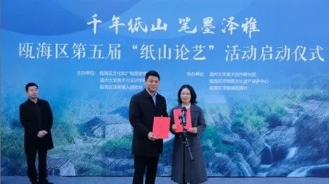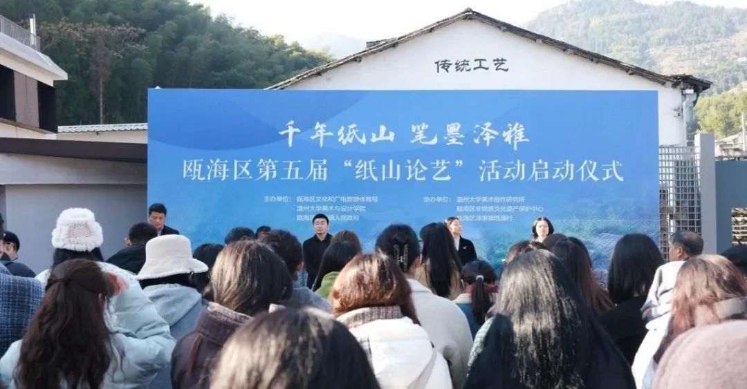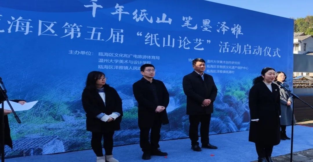 12月27日,在泽雅镇纸源村唐宅举行了“千年纸山,笔墨泽雅”瓯海区第五届“纸山论艺”启动仪式。本次活动是由瓯海区文化和广电旅游体育局、3044am永利集团3044noc和泽雅镇联合主办,是一次“非遗+美术”的文化宣传活动,是通过美术创作与艺术展示的形式,来宣传瓯海泽雅千年纸山的传统文化。