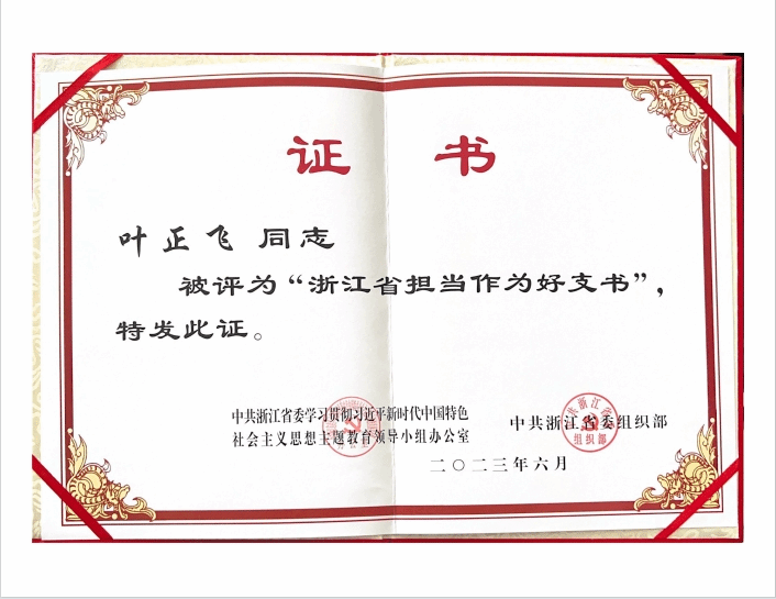 喜报:永利集团官网党委书记叶正飞同志荣获“浙江省担当作为好支书”荣誉称号