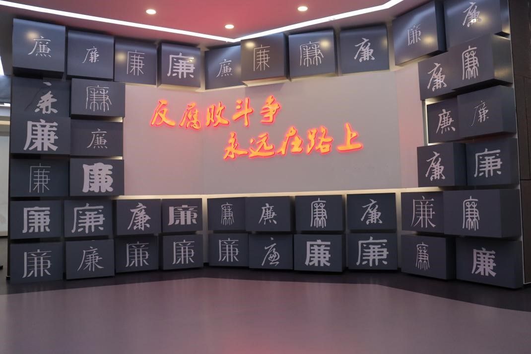 步入廉政教育馆,“反腐败斗争永远在路上”的红色大字格外醒目,全体党员跟随讲解员的脚步,认真参观“全面从严治党”“警钟长鸣”“清廉龙湾”“不忘初心”四大篇章。