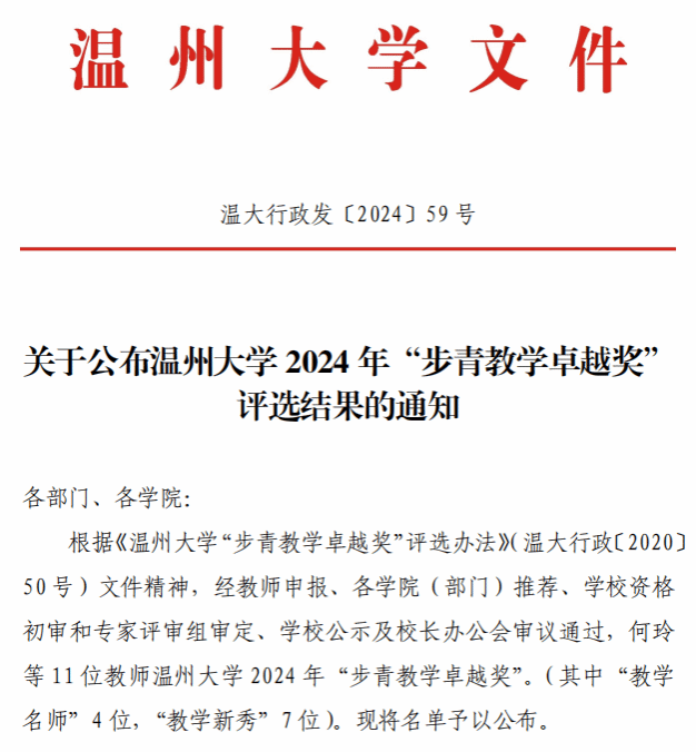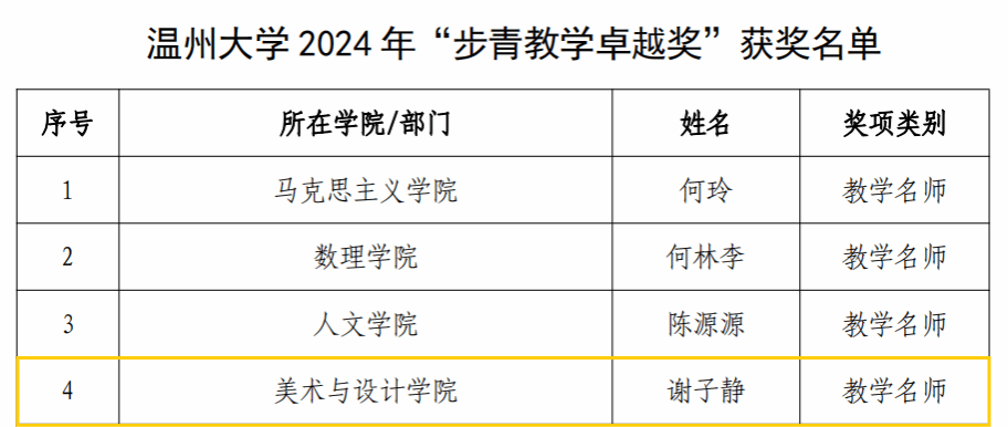 热烈祝贺永利集团官网院长谢子静同志荣获3044am永利集团3044noc“教学名师”荣誉称号!