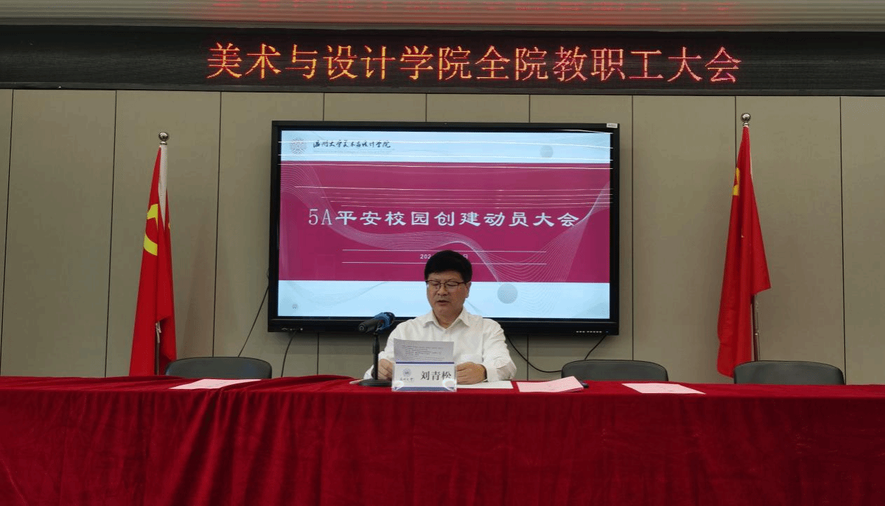 会上,刘青松书记传达了学校关于争创等级平安校园建设工作会议精神,强调了争创5A级平安校园的重要意义。同时,他部署了学院深入开展平安校园建设的相关工作,学习了创建平安校园应知应会的主要内容,以案例说平安,进一步提升师生的安全意识,号召全院上下一起努力,争创5A等级平安校园。