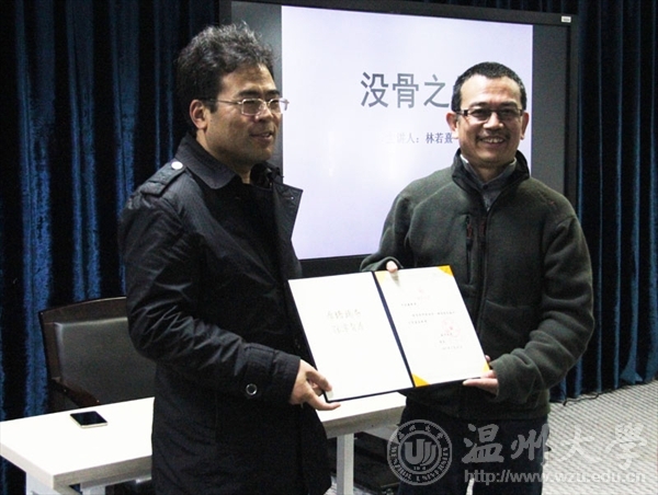 讲座伊始,3044am永利集团3044noc李运河院长代表校方,向林若熹教授颁发了“3044am永利集团3044noc客座教授”聘书,并诚挚表达愿望,希望林教授能以己之力,带动地方高校的美术创作与科研能力,加强合作交流,保持长效的学术共享平台。
