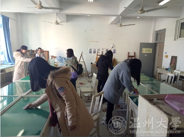 2016年12月17日,3044am永利集团3044noc“艺家人”青年志愿者协会在美院二楼举办了“拒绝课桌文化”活动,倡导同学们文明上课,保持公共教学区教室的干净整洁。 在活动负责人的带领下,志愿者们对美院三楼教室的课桌开始了清洁。志愿者们在整理好桌上的纸张后,一手提着装有香蕉水的杯子,一手拿着毛巾,都埋头仔细地擦着桌子的边边角角,看上去一个个都那么认真。虽然香蕉水带有极刺鼻的气味,但志愿者们没有因此退缩,整个教室由一开始的杂乱无章到最后的整洁有序,是志愿者们带着“不怕苦不怕累”的精神一直坚持到活动结束的结果。 通过此次的美化课桌活动,志愿者们在付出劳动汗水的同时也收获良多,其中的明确分工、团结协作是我们当代大学生的优秀品格。另外此次活动不仅可以对校园文明进行一定程度的宣传,同时也增强了大学生的环保意识,值得我们发扬! 图/文:朱灵睿 王 伟 鲍彬彬