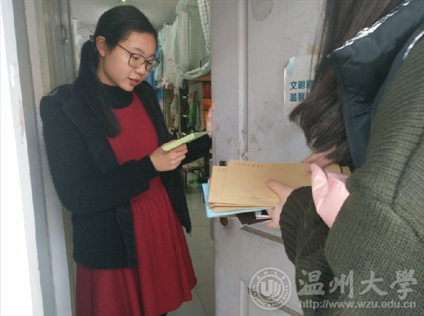 2016年12月28日,3044am永利集团3044noc“艺家人”青年志愿者协会在超豪学区开展了弘扬“雷锋”精神的“爱心邮递”活动。 在数字化信息化的时代,人们似乎已经忘记了在通讯技术落后的年代里如何将情感用文字嵌入信中,并让它飘向远方,表达内心情感。此次活动号召通过以信件的方式写下对他人的祝福或者感谢,由志愿者们送到收件人的手中,正是对从前慢节奏的情感交流很好的体验。活动受到了广大同学们的一致好评,同学们纷纷将想说的话写在信纸上,在收齐信件后,小邮差们穿梭在各栋寝室楼内,他们轻叩房门微笑地送上手里的信件,并与收信人合影留念。 图/文:王伟