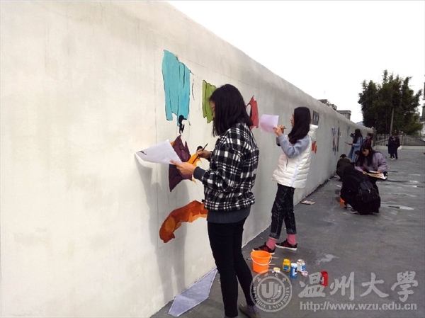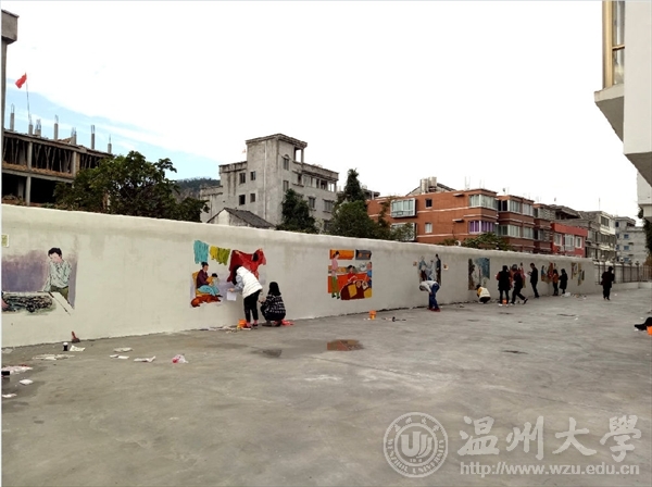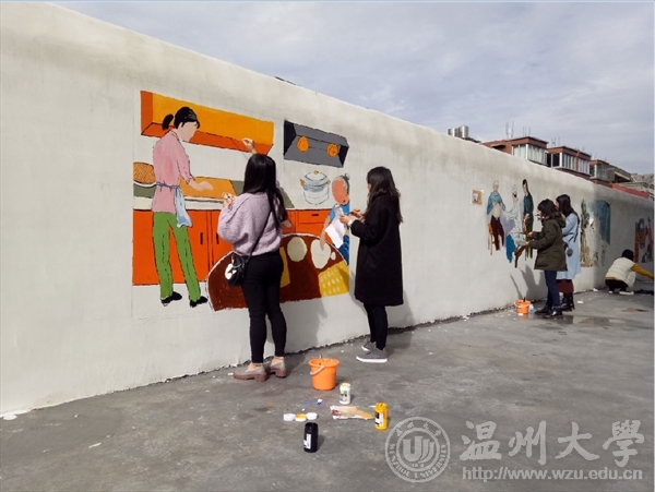 11月27日,3044am永利集团3044noc“艺家人”青年志愿者协会在杨岙村举办了“新青年下乡活动”。活动以墙绘的方式绘制新版“二十四孝”文化长廊,在改造环境的同时宣传中国传统的孝道文化。 墙绘过程中,不时有来往的村民驻足观望。志愿者们分组合作、分工明确:有的负责构图,用单色笔在墙体上勾勒出清晰轮廓;有的负责调色,那些看似单一的颜色在志愿者们的手中慢慢的变成了斑斓的颜色;有的负责涂色,拿起各式画笔在墙体上细致涂刷,慢慢地,墙面开始生动、鲜活起来了。经过两次的精雕细琢,手绘墙体终于完成。 图/文:王伟