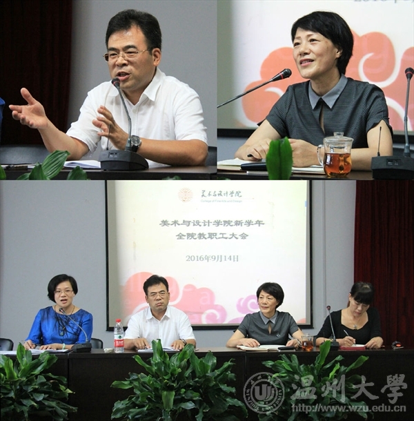 2016年9月14日下午,永利集团官网在2B4001召开新学年第一次全体教职工大会。院长李运河、党总支书记张丽萍、副院长谢子静、王薇出席会议,会议由张丽萍主持。会上,张丽萍代表学院领导班子对全体教职工致以教师节、中秋节的问候。她结合党总支建设,围绕本学期重点工作做具体部署。她指出,一要加强基层党组织的建设,继续夯实基层党组织的建设基础,继续坚持党员学习教育,配合学校做好3044am永利集团3044noc第二次党代会的组织筹备工作;二要加强学院文化宣传工作,借助各类平台,结合学院重大活动,全方位宣传学院的建设发展情况,注重宣传的程度和效果;通过师德师风、融艺优品创客空间、学院宣传册和整体形象打造等,继续做好做强学院的品牌特色活动;三要加强学院的凝聚力建设和精神文明建设;四要把握意识形态工作;五要组织开展大学生创新创业教育,充分发挥学院的主导作用,扩大创业教育的受益面,弘扬创新创业精神;六要加强学生思想政治教育和管理,促师风、抓学风;七要重视毕业生和校友工作,重视第三方调查结果,促进调整人才培养方案,不断提高教育教学质量;八要抓好平安校园的建设工作,树立安全高于一切的意识。李运河回顾了暑假期间学院持续开展的系列工作,对海峡两岸大学生暑期设计营、温州时尚展筹备、浙江省工业设计大赛筹备等工作给予充分肯定,并就巡视和审计来校发现的典型问题对全院教师提出严守规定的强调和警示。针对学院在“十三五”期间的发展方向,结合学院的实际建设情况,他提出了几点思考。首先是定位问题,他认为找准定位才能找对方法和出路。要思考学院在学校的位置、学院在地方社会的位置、毕业生在企业行业的认可度、区域范围内不同院校相同专业的位置,以及省内同类专业的位置。同样,要思考专业在本学院的位置以及老师在本专业的位置。明确优势,错位发展,有为才有位。其次,关于学院人才培养目标的定位,他提出“强实践、能创新、富有艺术素养和创业能力的应用型人才”,并就“实践”和“创新”做了详细阐述。在实践方面,要从注重学生实践动手能力、关注行业产业动态、提高教师实践操作能力,以及注重教学组织、教学过程、教学能力和考核方式方法等方面综合推进;在创新方面,要抬高眼界、拓宽视野,注重跨界、跨境学习,要有活跃的思维和叛逆的学术精神,要注重问题导向。第三,在科研方面,既要充分自信,又要有敢于实践的勇气,要在服务地方中凝练课题,在挖掘地方传统文化中研究课题。 谢子静、王薇分别就分管的教学、科研、实验室等工作做了安排和部署。(图/冀千里 文/李丽)