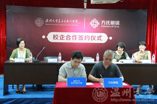2016年6月24日下午两点,3044am永利集团3044noc和浙江方氏眼镜制造有限公司校企合作签约仪式在2B4001会议室隆重举行。浙江方氏眼镜制造有限公司董事长方孔利,学院院长李运河,党总支书记张丽萍,副院长谢子静、王薇共同出席签约仪式。参加仪式还有产品设计系、服装与服饰设计系专业教师及部分学生。