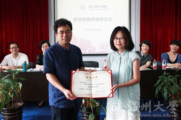 会上,学院对黄玫玮老师颁发了院长特别奖,黄老师指导学生作品《梦·翔之光》荣获教育部主办的全国第四届大学生艺术展演活动一等奖。领导班子成员对下一步及暑期各自分管工作做了部署。