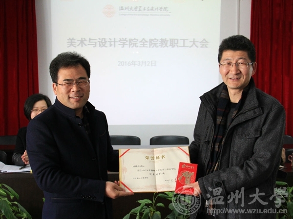 2016年3月2日下午,永利集团官网在2B4001召开全院教职工大会,学院领导李运河、张丽萍、谢子静、王薇、杨振海出席会议。会议由院党总支书记张丽萍主持。 (新学期第一次全院教职工大会召开) 大会首先授予胡建南老师2015年度“院长特别奖”,表彰胡建南老师多年来在师范生教育和师范技能培养中做出的积极贡献。(李运河院长为胡建南老师颁发2015年度“院长特别奖”) 随后,美术系、环境设计系、视觉传达系、产品设计系、服装设计与工程系、服装与服饰设计系六个系主任以及实训中心主任分别阐述了2016年度工作计划要点。(各系主任、实验中心主任及教学督导组长发言) 学院各分管领导对本学期的工作进行部署和安排。谢子静副院长从学院督导工作、课程展、实践教学及毕业设计答辩及展览等方面部署了学期重点工作;王薇副院长对学院近期工作进行了总结和部署,强调了学科科研、大学生创新创业以及实验室建设等工作;杨振海副书记分别从学风建设、大艺展、招生与就业、寝室导师、学生创客空间等工作进行部署。 李运河院长做重要讲话。他对系主任的工作给予了高度肯定,他认为学院的发展建设依赖于各系、各专业的共同努力。他对新学期学院工作进行了部署:一是树立主人公意识,加强系、教研室、实训中心建设,指出每位教师要为学院的建设献计献策,关心学院发展,关心温大发展;二是加强人才培养,围绕“强实践、能创新、富有艺术素养和设计创作能力”应用型专业艺术人才的培养目标,注重教学过程建设,切实提高人才培养质量,以立地促跨越、实践创新“双核驱动“为导向,强调人才培养注重跨界学习、跨境培养。三是重视学科建设工作。他指出,要从服务地方中凝练课题,不断挖掘地域传统、参与地方文化建设,在艺术创作中突出主题和时代性。四是重视师资队伍建设,从”外引内培“来逐步打造具有核心竞争力的师资队伍,鼓励教师外出访学进修不断提高专业素养,跨专业组建教学科研团队;五是要加快国际化建设进程。(李运河院长讲话) 张丽萍书记总结讲话。她对系主任工作、督导工作等给予了充分肯定,指出每个系之间要相互了解,不断交流学习,彼此之间取长补短才能推进各个系的建设,进而推进学院的发展建设。在十三五开局之年,结合党建思想工作,她提出了美术学院大家庭建设的重要性。她认为,美院大家庭建设,离不开学院领导班子队伍和教师队伍。她说,美术学院班子是一个团结的、务实的、进取的、廉洁自律的班子,在各个方面充分发挥了火车头的作用;在教师队伍建设上,她认为要以“立德树人“为根本任务。在凝聚力建设上,张丽萍提出要依托载体、要真情关怀真情服务时刻为师生着想、要以积极的形象来振奋人心、要多举办文体活动来凝聚人心。(张丽萍书记讲话) 会上,金晨怡老师对2015年访学工作进行了汇报交流。