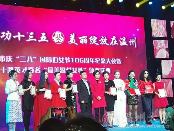 昨晚,在市妇儿活动中心举行的庆祝“三八”国际妇女节106周年纪念大会暨十路英才百名“最美温州女性”颁奖庆典上,永利集团官网服装与服饰专业教师叶茜获得“最美温州女性之时尚女性”称号。