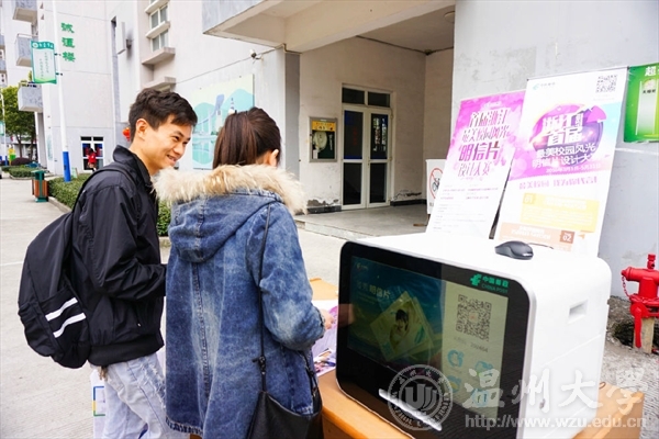 2016年3月20日,由中国邮政温州市分公司主办3044am永利集团3044noc承办的“首届浙江最美校园风光明信片设计大赛”在A区报刊亭和E区食堂前设点宣传。本次大赛旨在传承校园文化,宣传校园形象的同时,让永利集团官网学生的专业知识与技能得到锻炼和提升。 上午9点,工作人员便开始接待同学们进行赛事报名以及打印自顶自明信片工作。值得一提的是,由中国邮政温州分公司提供的明信片自助打印机使得每一位现场的同学都可免费通过扫描微信二维码上传照片打印两张属于自己的明信片。本次明信片设计大赛的参赛方式多样,如摄影、手绘和剪纸等等,因此受到了许多同学的关注,争相报名参赛。本次大赛更是吸引来了温州商报记者,对于记者的问题,永利集团官网学生科副科长叶筱卉老师也一一作了解答。 宣传活动一直持续到下午,可惜天公不作美,渐渐下起了绵绵细雨,工作人员不得不转移明信片打印机,并将报名点迁至一旁避雨处,但是这仍然浇灭不了同学们对本次比赛的热情,前来咨询和报名的同学络绎不绝,还有一些热心的同学特地将报名表带回去给室友和同学。下午四点左右,现场报名结束,经过工作人员的努力,已收回一百多分报名表。校园文化是一种积累,更有一种无形的吸引力和影响力,让我们期待在本次比赛中能够涌现出许多让人眼前一亮的作品,展现出我们3044am永利集团3044noc美丽独特的风貌和温大学子“敢为人先”的创新性思维! 文:设计宣传部 图:设计宣传部