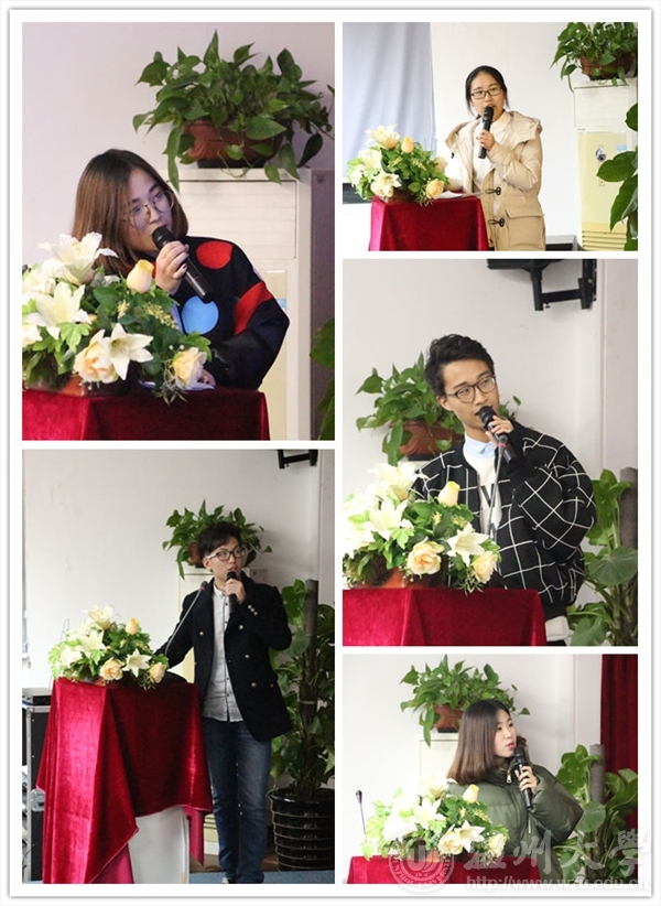 12月30日晚,3044am永利集团3044noc团委学生会2015-2016学年第一学期第四次全体成员大会在美院楼2B4001召开,参与此次全委会的人员有团委书记叶筱卉老师,团委指导老师商义铮老师,团委副书记孙彦鑫,学生会主席张昇,学生会副主席刘秀娜,学生会副主席周志豪,青协会长杨猛以及团委学生会全体成员。 会议第一项议程是“每月之星”的评选。转眼间,3个月前在这里面试并荣幸的成为了团学的一员,工作时还会手忙脚乱的青涩的干事们,现在已经可以自信地站在团学全体人员面前做工作总结了。干事们以十足的诚意准备的精彩演讲博得阵阵掌声。正如有个干事所说的那样:“你的人生永远不会辜负你,那些转错的弯,走错的路,留下的泪,滴下的汗水,全都会让你成为独一无二的自己。”相信经过团学的工作磨练后,干事们会更加优秀,成为更好地自己。 第二项议程是每个部长汇报本月工作,各部长诚恳陈述了工作的优缺点,也对工作做出了简要说明。 第三项议程是老师讲话。团委书记叶筱卉老师和团委指导老师商义铮对于“每月之星”的演讲表示非常欣喜。团委书记叶筱卉老师说,“每月之星”不仅展示了个人形象,也展示了部门风采。同时老师也建议干事们多谈自己的工作成长,和具体的点滴会更好展示个人的学习收获。同时,叶老师也分享了她的体会心得。叶老师说,比起成绩,成长更重要。我们现在获得的成绩是对我们付出的认可,希望同学们工作中得到锻炼,有所成长。在成长中,我们不能随波逐流,要做好自己的选择,并在现在和将来做好自己。看看自己今天做了什么,有什么可以引领自己,使成长在足够长的时间里得到积淀,再回过头给自己做一个成长鉴定。 最后,学生会主席张昇的讲话让同学们体会到身为团学一员每个人工作的重要,和必须的责任感。团委学生会在和谐的气氛中结束了,相信优秀的干事们可以在工作中得到更多磨砺,让美院团学更加精彩。图:设计宣传部文:设计宣传部