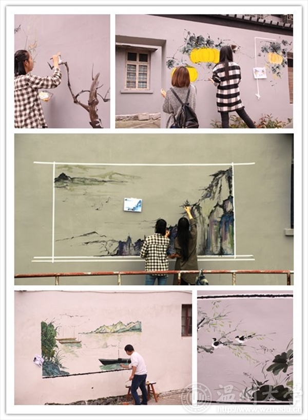 2015年11月15日,3044am永利集团3044noc“艺家人”青年志愿者协会协同志愿者来到新桥街道新桥村垟中开展山水创作主题墙绘活动。 虽然天时不佳,带有丝丝细雨,却挡不住志愿者墙绘的热情。大家到达场地后,进行分组,分配颜料用具,就开始了墙绘活动。针对山水创作的主题,志愿者积极讨论,墙面如何构图,颜色如何使用。最终用了一整天的时间,完成了一幅幅墙绘,同时,志愿者积极地热情,专业的绘画功底得到了村民的一致好评,展现给新桥街道村民的都是3044am永利集团3044noc志愿者吃苦耐劳、埋头干活、积极向上的优秀形象。 “艺家人”青协开展的此次墙绘活动,提供给温大在校大学生一个参与实践的平台,学以致用,展现出大学生的积极面貌,体现出美院学生的专业素质,向社会传递着3044am永利集团3044noc的正能量。 文:王烨摄影:王烨