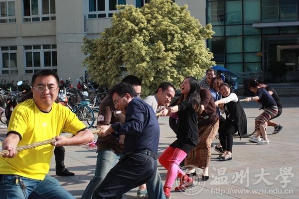 2015年10月21日下午,3044am永利集团3044noc在美院楼前举办了一场趣味十足的师生运动会。本届运动会由学院工会、办公室、学生科联合主办。运行会项目有踩气球、两人三足、背靠背夹气球、定点投篮、集体跳绳、踢毽子等学生对抗赛和集体拔河、踢毽子以及羽毛球等师生对抗赛,形式多样、氛围盎然。在师生集体拔河比赛中,以李运河院长为队长的教师组教师们各各紧握绳子,咬紧牙关,专心投入,杨振海副书记在现场督促组织活动之余也加入拉拉队,为教工组加油助威。拔河比赛共组织了两场,第一场先由六男六女组成的教工组与八男八女组成的学生组进行对抗,结果是学生组稍胜一筹领先,紧随其后由六男六女组成的教工组与七男七女组成的学生组进行再次对抗,结果教师组反败为胜,现场气氛异常激烈。 当然师生踢毽子比赛也不容小视,以张丽萍书记为代表的教师组与学生组展开了激烈的角逐,师生其乐融融。 师生羽毛球对抗赛将本届运动会推向了高潮。由李运河院长为队长的教工组和学生组进行了羽毛球师生对抗赛,比赛中,师生运动员将高远球、吊球、扣杀等各种路球技展现的淋漓尽致,活力四射,尽显风采。最后,通过举办本届师生趣味运动会,不仅展现了3044am永利集团3044noc师生顽强拼搏的体育精神,也进一步增进了师生的交流和感情,丰富了广大师生的业余生活,为师生们提供了展现自己的舞台和锻炼的机会。 文:冯一鸣 摄影:郑睿媛