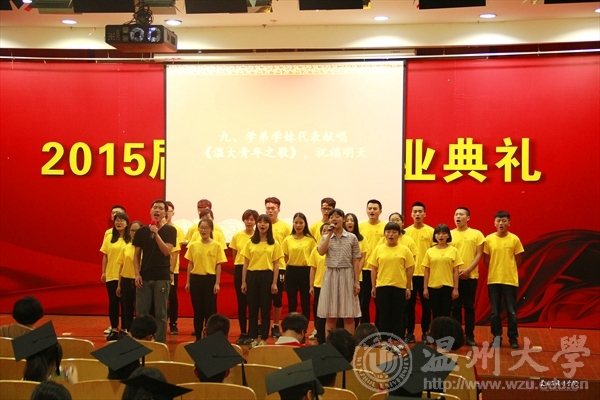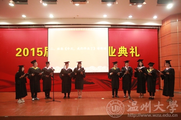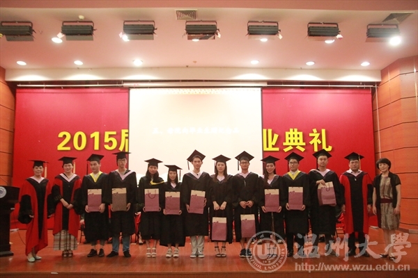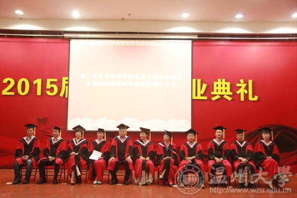 6月17日下午,3044am永利集团3044noc在岩松堂雁山厅隆重举行2015届本科生毕业典礼暨学位授予仪式。出席典礼仪式的领导有:3044am永利集团3044noc校长蔡袁强、3044am永利集团3044noc院长李运河、党总支书记张丽萍、副院长谢子静、副院长王薇、办公室主任李丽、学生科科长叶如芳,美术系主任陈伟、设计系主任朱广宇、服装系主任陈明艳、教授舒湘鄂、教授魏静、教授邓国祥、教授李勋祥、教授蔡瑞蓉、博士张晓剑。此外,全体毕业班班主任、教师代表、全体毕业班同学参加了本次典礼。学院党总支副书记杨振海主持典礼。 首先,进入第一篇章《只如初见 恍如昨日》,主要有电子相册的播放、微电影《献给毕业的你》、以及诗歌朗诵《今天,我们毕业了》等内容。追忆四年,一幕幕场景、一段段音符,串连成一部画面与音乐交织的大学电影,播放着曾经的快乐与忧伤,记录着同学们曾经的青春与过往,也见证着拥有的友谊与深情! 随即进入第二篇章《青葱年代 凤凰花开》部分,学院副院长谢子静宣读了校优和院优毕业作品获得者名单,学院党总支书记张丽萍宣读了省优和校优毕业生获得者名单,院长李运河、书记张丽萍、美术系主任陈伟、设计系主任朱广宇、服装系主任陈明艳、教授舒湘鄂、教授魏静、教授邓国祥、教授李勋祥、教授蔡瑞蓉、博士张晓剑一一为他们颁奖、合影留念以资鼓励。 紧接着典礼进入第三篇章《亦师亦友 常忆相思》部分,学院为全体毕业生赠送纪念品——由美院学生原未手工皮具工作室制作的卡包。 为了更好的与毕业生保持联系,学院特意设立了各班级的校友联络员,学院副院长王薇宣读了名单,院长李运河、书记张丽萍为每位校友联络员颁发聘书。 接着,由省优毕业生11美本师范班马俪净代表2015届毕业生发言,她回忆了在温大的学习与生活经历,并表达了毕业生们即将离开的不舍和即将高飞的壮志。精彩的发言引起了在场毕业生们的共鸣,赢得了阵阵的掌声。 至此进入第四篇章《寄语明天情深道远》,院长李运河为2015届全体毕业生致辞!他祝愿大家以正确的世界观、人生观、价值观来指导自己的选择。志存高远,增长知识,锤炼意志,让青春在时代进步中焕发出绚丽的光彩,未来的自己,一定会感激现在努力的自己。 接着在校的学弟学妹代表为全体毕业生献唱《温大青年之歌》。 最后,典礼进入高潮部分,由3044am永利集团3044noc校长蔡袁强为每位毕业生一一拨穗、颁发学位证书,并合影留念。这隆重的毕业典礼将成为每位学子心中最美好的回忆。祝福毕业生同学们明天更加辉煌灿烂!前程似锦!