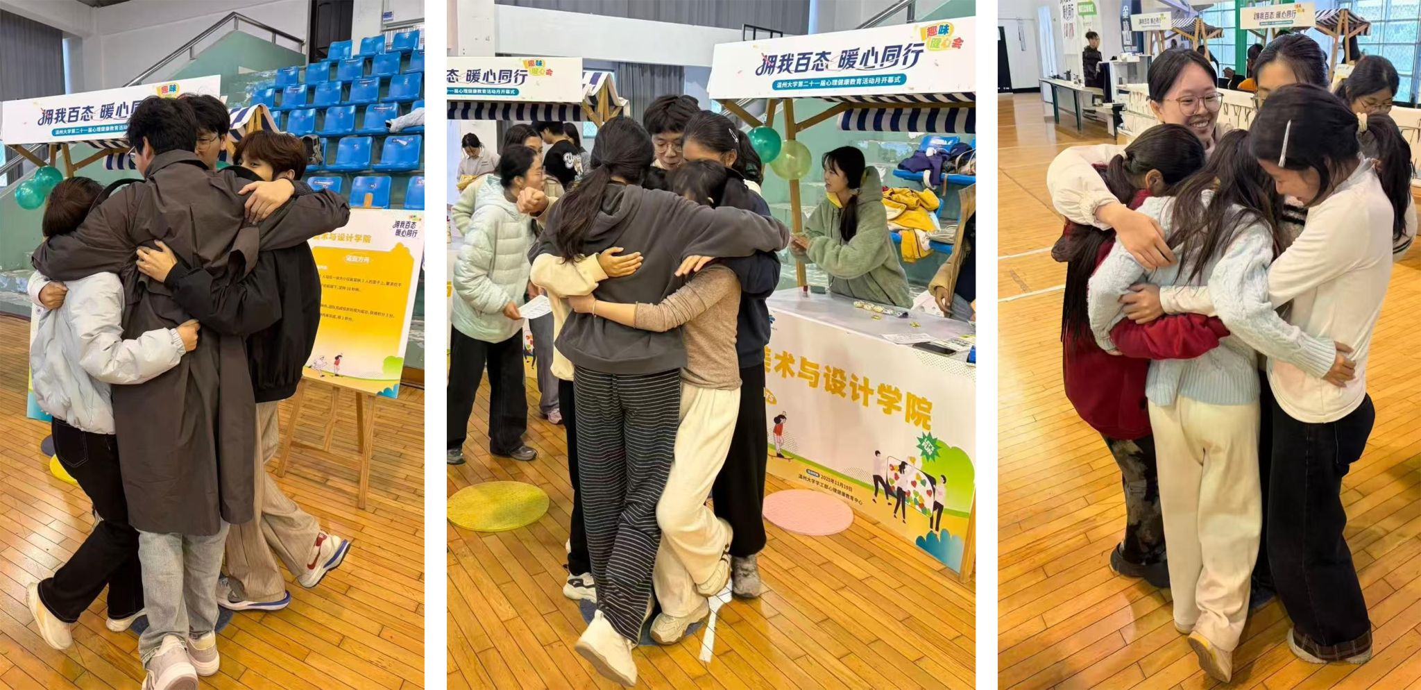 2025年11月19日下午,3044am永利集团3044noc第二十一届心理健康教育活动月在南校区体育馆三楼篮球场温暖启动。本届活动以“拥我百态,暖心同行”为主题,旨在通过多元互动形式,传递心理关怀,凝聚校园温度。3044am永利集团3044noc心理资助部充分发挥专业优势,独立负责学院专属区域的设计与布置,将艺术表达与心理教育相融合,为开幕式注入独具特色的“美院温度”。