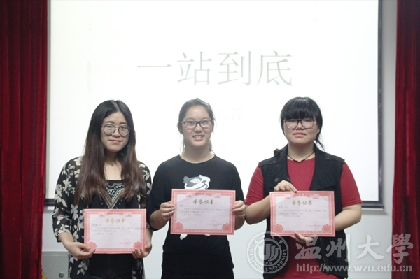 为提高广大同学的艺术素养,营造良好的学习氛围,5月24日下午,3044am永利集团3044noc团委学生会在2B4001举办了3044am永利集团3044noc第二届“一站到底”知识竞答比赛。学院团委学生会团副书记金李斌、团委学生会副主席叶佳颖、素质拓展部和学术科技部的部长出席了本次活动。 开始之前,主持人组织同学们为各组加油,壮大气势。比赛正式开始,各位选手首先做自我介绍,满怀斗志地说出自己的决赛宣言,台下的观众更是给予选手们最大的支持与鼓励。比赛共分为两轮,第一轮为团体内部的战神选拔,各组由抽到擂主的同学选择组内的一名同学做挑战者,组员之间按照编号轮流答题。第一轮结束,台上每组剩下一个战神——他们就是今晚的战神团;第二轮为战神之间的角逐,采用答题板的方式进行角逐,经过两个半小时的层层筛选和智力对决,最终决出“终极战神”。此次知识竞赛在热烈的氛围和同学们的喝彩声中落下帷幕,一场智慧的交锋,一次思想的碰撞,让更多的人认识到知识海洋是无穷无尽的,学习之路也是永无止境的。