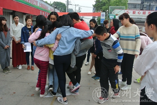 为更好地贯彻落实党的十八届三中全会关于“强化体育课和课外锻炼,促进青少年身心健康、体魄强健”的精神,4月18日,3044am永利集团3044noc艺家人青年志愿者协会与梅泉社区小朋友们开展了“走下网络、走出宿舍、走向操场”主题课外趣味运动会。