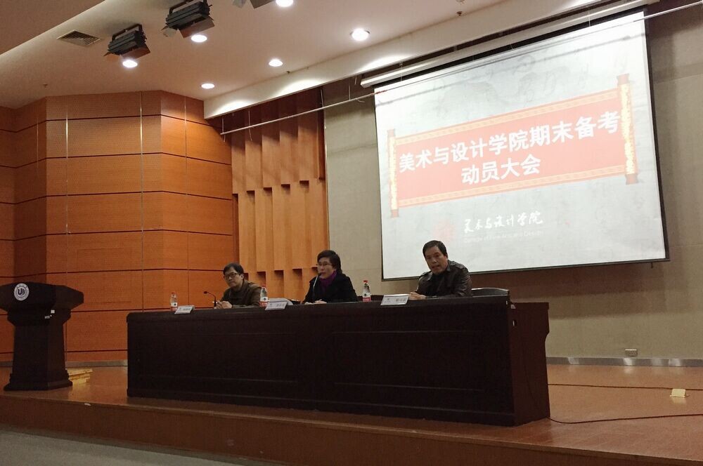 为了激励学生主动复习,自信迎考,诚信应考,营造良好考风学风。1月7日下午,3044am永利集团3044noc在南校雁山厅举行了2014-2015学年第一学期期末备考动员大会。出席此次会议的有学院党总支书记郑彩莲、副院长蔡可群和副书记杨振海,以及全体大一新生与老生代表。杨振海副书记主持会议。首先,蔡可群副院长围绕学院“学风建设年”的实施背景,结合艺术专业的学习特点,从学习态度、学习方式与学习方法等角度阐述了学风建设在人才培养过程中的重要性,并强调考风是学风建设的集中体现,也是彰显公平竞争的具体体现。随后,郑彩莲书记针对期末备考与诚信考风做了严爱相济、语重心长的指导讲话。她指出,诚信作为新时期社会主义核心价值观的重要内容,是衡量个人品行优劣的道德标准之一。她结合具体案例从考风形势预判、考风违纪预案处置、考风信息及时传递、诚信考风人品考量等方面强调了“诚信考试是硬道理”的理念。她强调党支部、团委、班委要做好诚信考风的宣传工作,更要发挥模范带头作用,以良好的考风促学风。她希望同学们能够自觉遵守考场纪律,让考场成为一片公平角逐、展现实力的净土。她更希望能够看到一个大家都你追我赶,求知若渴的美院,而每一个置身其中的人都能感到欣慰和自豪。最后,杨振海副书记勉励同学们在期末考试中,不仅要交出专业知识的水平之卷,更要交出诚信的品行之卷。