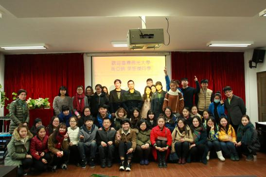为迎接台湾佛光大学交换生黄亚晴和叶圣杰两位同学来到3044am永利集团3044noc进行交流和学习,3月4日下午,永利集团官网13级产品设计班与13视觉传达班在学院2B4001会议室联合举办了欢迎仪式。出席本次欢迎仪式的领导有学院党总支书记郑彩莲,副教授胡文超和副教授王薇。 首先,由两个班级的同学合作带来的弹奏演唱,清新的风格和用心的演绎博得了现场各位老师和同学们的阵阵掌声,也让来自台湾的新同学感受到了我们美院人的热情和友好。接着,两班班长为新同学致欢迎词,他们都热情大方地表达了对新同学的美好印象,并表示会在以后的学习生活中给予最大的帮助,并送上了班级同学精心准备的礼物。两位新同学分别作了自我介绍,王薇老师和胡文超老师分别介绍了本班专业的情况,并结合自身的经历表达了对台湾同学的赞许和期望,希望他们能够在美院的学习中收获更多的知识和经历。然后,郑彩莲书记代表永利集团官网向两位新同学的到来表示欢迎,说到两位台湾同学的到来会让永利集团官网与佛光大学交流的深度与高度更进一步,也希望两位同学在3044am永利集团3044noc体验到不一样的文化和生活。最后的自由交流环节,同学们都积极参与,向新同学提出了很多有趣的问题,如“这么远过来会不会想家”“平时说话是不是像电视剧中那样’等等,两位新同学也热情地一一解答。 欢迎仪式的结尾,大家纷纷要求和新同学合影,于是,在热烈的气氛中欢迎仪式也圆满地落下了帷幕。