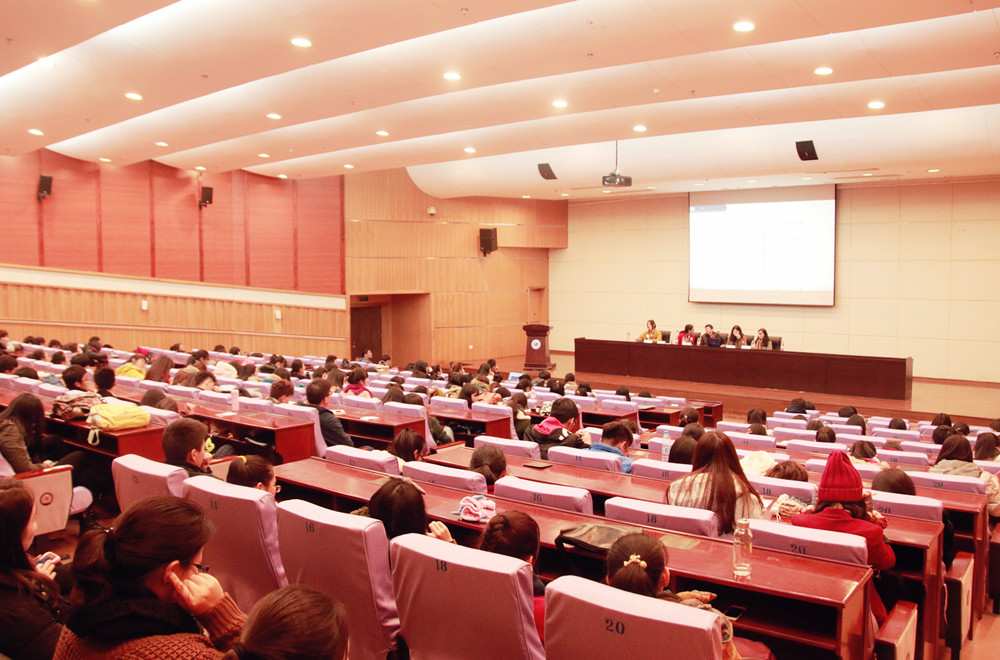 12月11日,这一场期待已久的分享盛会在育英图书馆二楼学术报告厅举行。 此次活动由3044am永利集团3044noc团委学生会学风纪检部主办,3044am永利集团3044noc史论教研室主任、院师范技能指导教师胡建南老师应邀主讲,省、校师范技能大赛获奖者黄仁慧、吕文婕、潘诣欣应邀分享经验。学院三个年级的师范班同学参加了本次交流会,此外,许多非师范班的同学也积极前来听讲,全场座无虚席。此次会议由研二学姐李艳燕主持。 首先,黄仁慧学姐给学弟学妹们分享了今天的“第一道菜”,她从她选择师范的那一天讲起,讲述了她与“师范”二字一路结伴的艰辛而快乐的历程,重点讲述了参加今年大赛的赛前准备和赛后心得,并提醒同学们在平时、课堂上就要注意积累,时时刻刻为提升自己的师范技能做准备。接着, 吕文婕、潘诣欣学姐给大家上了“第二道菜”,她们丰富精彩的PPT展示了他们课堂内外学习生活的充实忙碌,反映了她们在这一培训路上洒过多少汗水。她们从教师气质培养、表达能力提高、书法技能培训、教课思路创新等等方面向大家传授了丰富的经验。
