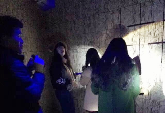 在2点20分左右我们到达迷城密室。我们兵分三路,前往“法老墓的诅咒”。密室里光线阴暗,封闭闷热。同学们却依然兴致勃勃共同寻找“逃生”的办法。通过老师和同学们团结一致的合作,我们战胜了一个又一个的困难。走出密室,班主任老师与同学们进行了深入的谈话。让同学们明白了合作的意义,并细心解答了同学们的各种困惑以及身边同学相处的各种难事。