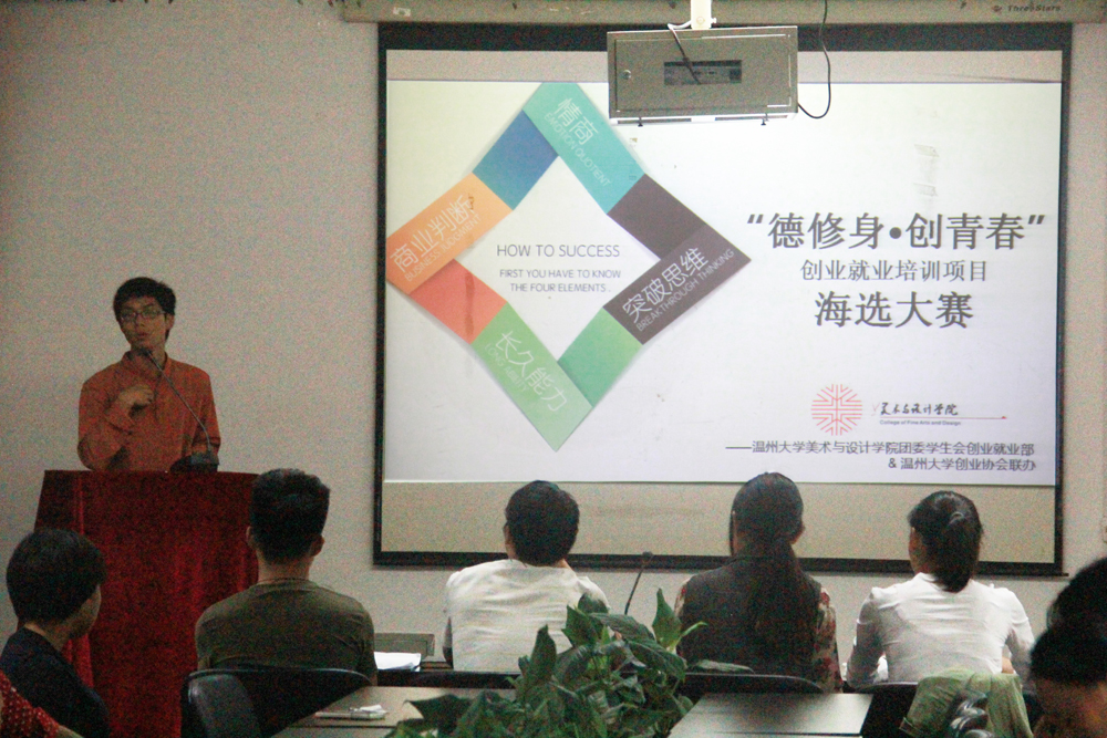 10月18日下午,永利集团官网团委学生会创业就业部和校创业学院创业协会联办的“德修身&创青春”创业就业培训项目的海选大赛在2B4001拉开序幕。团委副书记金李斌,创业就业部副部长张昇、胡霜霜,研究生代表李艳燕、张娜,共同担任了此次大赛的评委。来自学校不同年级的同学参加了本次海选。 参赛选手热忱地讲出了内心关于创业的想法,并积极与评委或参赛同学进行交流。有的人已有创业经验,有的人怀揣着未实践的“创业梦”。评委们与各位参赛选手密切的交流,分享了自己创业的经验,并且提供建设性的意见。 希望通过德修身&创青春”创业就业系列培训项目可以激发在校大学生的创业活力与激情,增强创业就业能力,在创业路上迈出坚实的步伐。