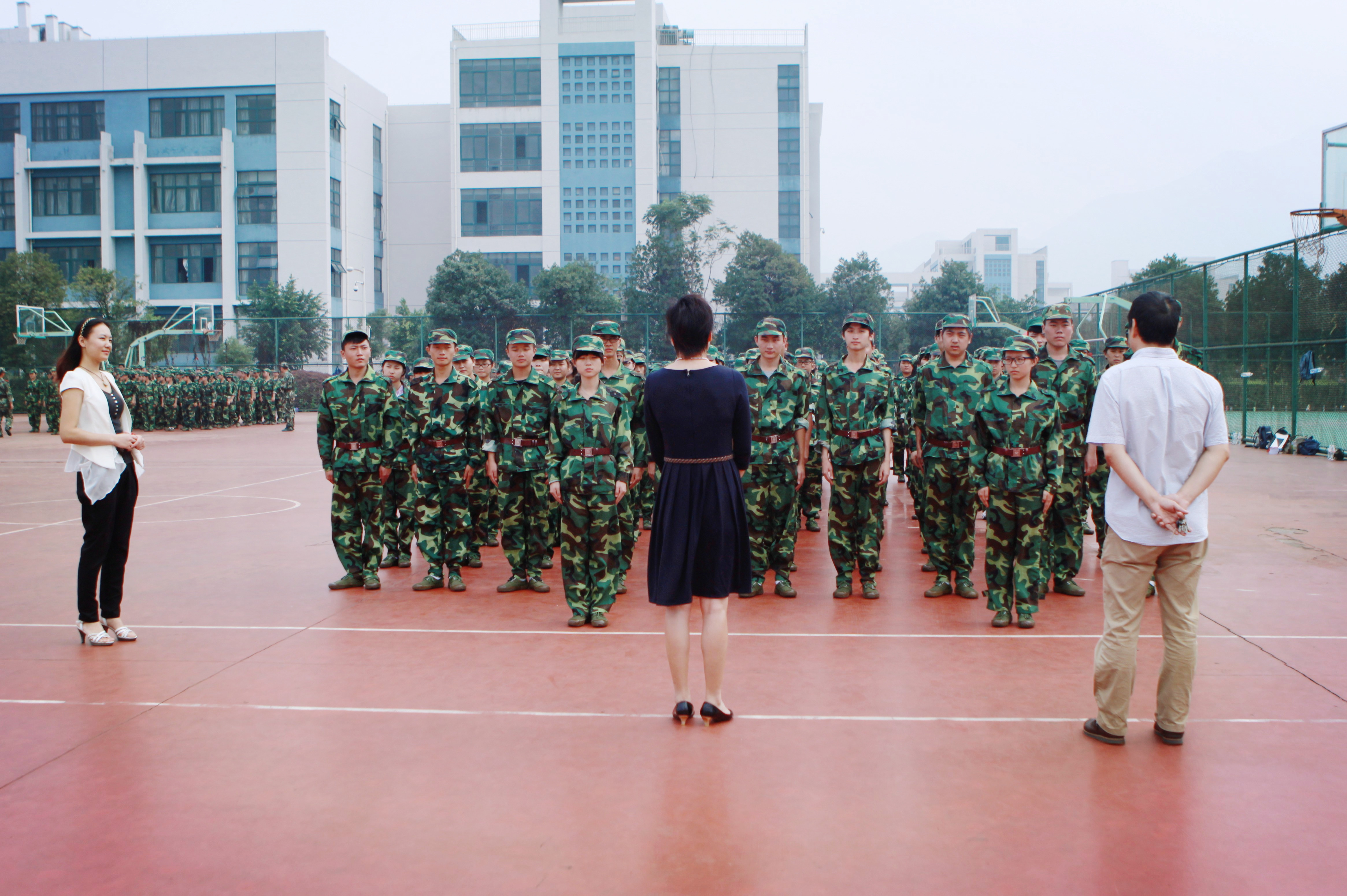 北校操场上,一个个整齐的方阵在有序移动着,清一色的戎装展现朝气蓬勃的青春风采。院领导的到来让他们十分激动,齐声喊到:“老师好!”郑彩莲书记对他们飒爽的军姿、认真的态度、坚强的意志表示称赞。她对新生们讲到:军训是体质的磨砺,也是行为修养的锤炼,更是精神思想的洗礼。她希望新生们能够珍惜机会,刻苦磨练,保质保量完成军训任务,更希望从军训开始,把人生旅途走正、走好、走稳。此外,蔡可群院长向新生们致以亲切的问候,嘱咐他们要注意防暑防晒,以健康的体格将军训进行到底。