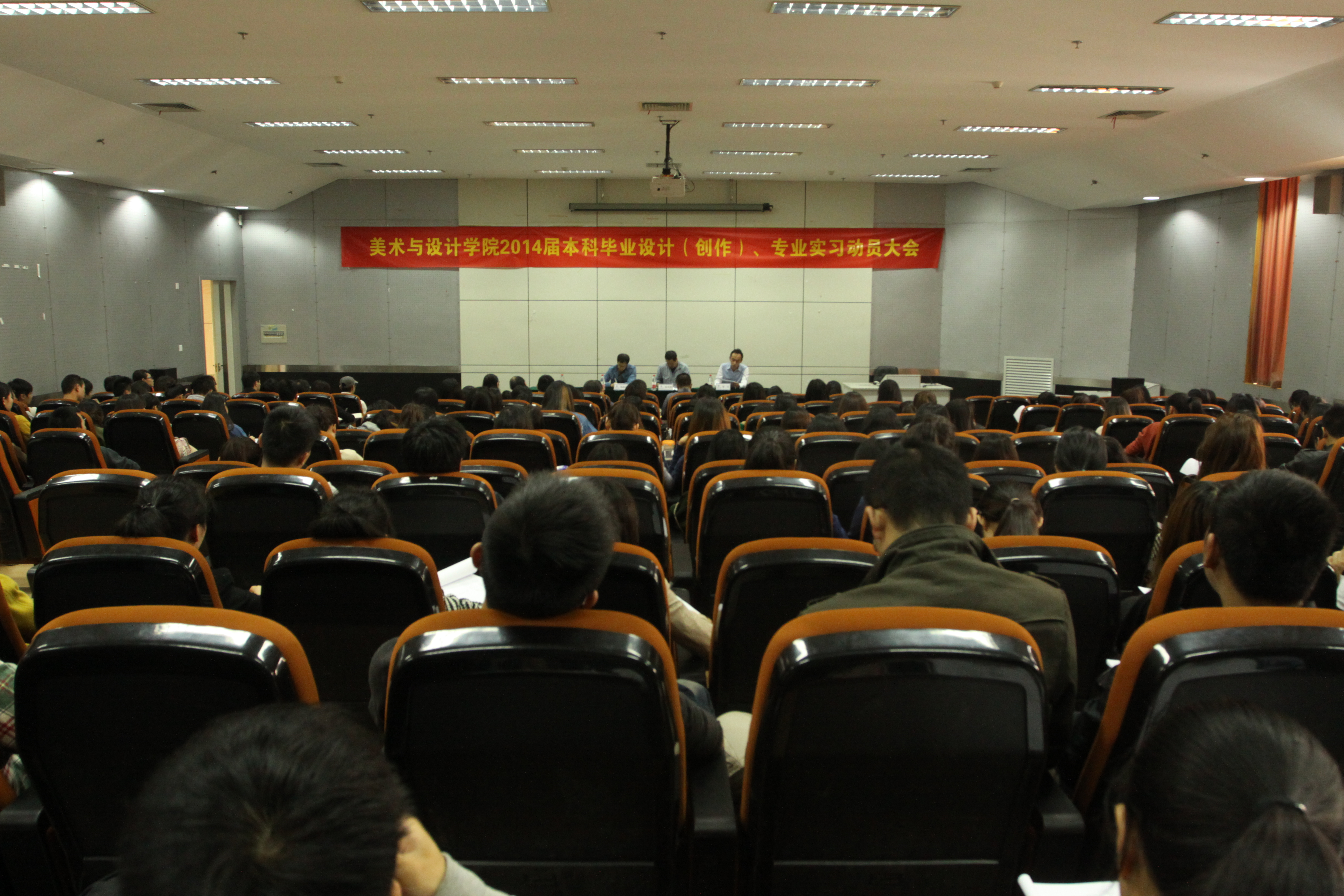 为顺利开展2014届毕业设计工作,11月8日上午,3044am永利集团3044noc2014届本科毕业设计(创作)、专业实习动员大会在学校会展中心叶适厅举行。学院副院长蔡可群老师,副书记杨振海老师,教学科邹青老师,及美术、设计、服装三个系的系主任、各位毕业设计指导老师及全体14届本科毕业生参加了会议,会议由邹青老师主持。 首先,邹青老师介绍了2014届本科毕业设计(创作)总体工作进度安排和毕业设计网络平台的使用,在毕业设计工作领导小组、时间安排、指导工作、对学生的要求、中期检查、论文的要求、论文的评阅与答辩和毕业设计的评分等方面做了详细说明,他希望同学们要认真准备,严格按照计划,做好毕业设计;接下来宣读了《3044am永利集团3044noc毕业生校外实习安全管理规定》。 学院副院长蔡可群老师就毕业设计向指导老师和同学们提出了三点要求:一要高度重视,提高认识。毕业设计是大学三年学习成果的总结,好的论文是大学三年学习成果的真实体现;二要严格按照时间安排,保质保量地做好毕业设计。三是殷切地希望同学们要以毕业设计为契机,提高动手能力,严格按照毕业设计工作要求,及时、主动地与指导老师联系,能够做出优秀的毕业设计。 副书记杨振海老师提醒同学们要注意安全,遵纪守法,实习期间注意时限性,保持和指导教师、班主任、学生科的通讯畅通,并预祝同学们能够完成毕业设计,圆满毕业,找到适合自己的工作岗位。 最后,美术系系主任陈伟老师、设计系教师胡文超老师、服装系系主任陈明艳老师和同学们就各自专业毕业设计进行了交流和探讨。