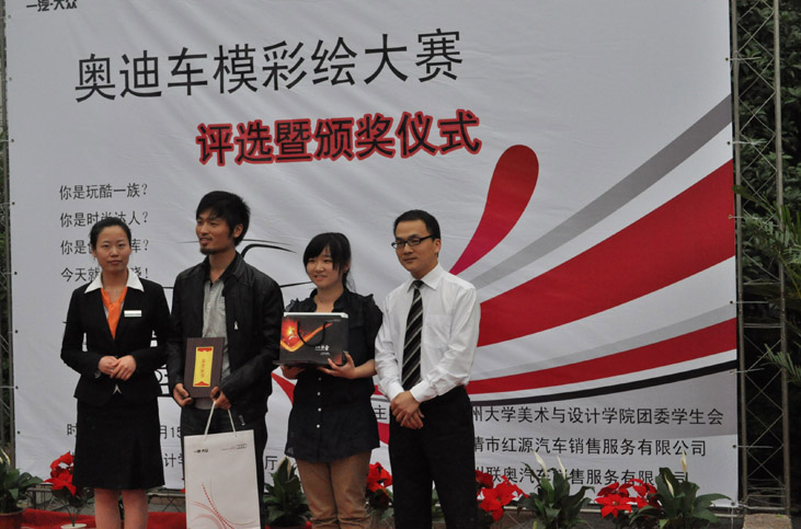 2011年5月15日在3044am永利集团3044noc南校会展中心一楼奥迪车模彩绘大赛决赛如约而至。此次活动由3044am永利集团3044noc团委学生会、乐清市红源汽车销售服务公司和温州联奥汽车销售有限公司联合举办。 决赛中,乐清市红源汽车销售服务公司大客户经理卢波先生、温州联奥汽车销售有限公司大客户经理黄若静女士、吴辉辉女士和永利集团官网专业教师胡文超、陈旭担任了本次比赛评委。在经过紧张认真的评分后,现场评选出了一、二、三等奖,共12件作品获奖。评委老师也对参赛作品进行了现场点评,让同学们获益良多。比赛主办方也对美院学子的艺术才华予以了充分肯定。 此次活动不仅丰富了同学们的大学生活,还锻炼了同学们的动手能力及设计思维,增加了同学们对汽车文化的了解和与名企的接触。 新闻 任陈超 摄影 徐玉萍