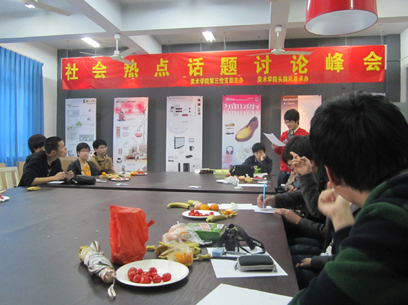 4月17日,由3044am永利集团3044noc学生第三党支部主办、08工业设计头脑风暴小组承办的“社会热点话题讨论峰会”在学院工业设计实训室火热开展。学生第三党支部全体成员、08工业设计头脑风暴小组成员和来自瓯江营销专业的部分同学围绕着“房价”、“创意”、“能源环保”等几个社会热点话题分别展开活跃讨论。
