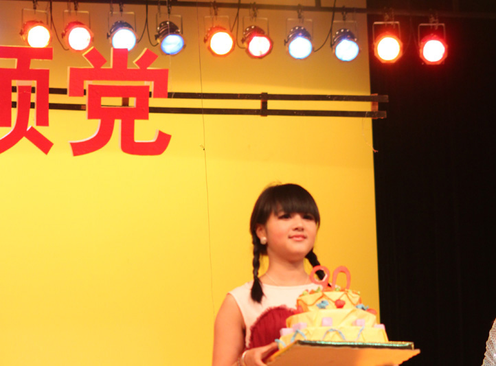 永利集团官网的朗诵节目《点燃90支蜡烛——祝党生日快乐》集合了20多位青春靓丽的大学生亮相舞台。节目开始描述一群豪情迈丈、英勇牺牲的革命烈士,随后以4人领颂和20余人群颂的形式向观众们展示,而且不光仅仅是朗诵更融入了美院的特色——书法,作为党90周年的生日礼物。节目最后还穿插有献上生日蛋糕的环节,在《生日快乐》歌声中落下帷幕,博得现场的阵阵掌声。