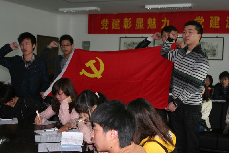 4月6日下午2点,3044am永利集团3044noc第14期业余党校开学典礼在2B4001会议室举行,学院党总支书记、分党校校长郑彩莲出席典礼,学生科辅导员徐聿淼老师,刘英丽老师参加,同时学生各支部书记、第十三期分党校优秀学员及分党校全部学员参加典礼,开学典礼由徐聿淼老师主持。 伴随着雄壮的国歌声,全体人员肃穆起立,高唱国歌。接着预备党员在庄严气氛中宣誓,会议室回荡着他们铿锵有力的宣誓声音,充满了浓重的历史感。牛广强同学和于洋同学作为党员代表和入党积极分子代表发言,牛广强同学以自身经历给本期学员提出建议,号召他们珍惜培训机会,端正入党动机,在学习过程中不断提升自我;于洋同学表示成为入党积极分子是催人奋发上进的动力,在座学员应该树立正确的人生观、价值观,用虚心的学习态度和良好的学习成绩早日向党组织靠拢。典礼上郑彩莲书记为学院第13期分党校优秀学员颁发荣誉证书,柳俊丰宣读了本期党校的培训计划以及注意事项,强调了党课纪律,并对党课培训计划做深入解读。 随后郑彩莲书记对本期学员表示热烈欢迎,并提出殷切期望。郑书记首先结合入党誓词中的关键词展开解读,对每位学员提出要求,号召学员以党员的标准严格要求自我;并针对党员代表的发言,谈到党员成长和境界的提升历程,希望在座学员在学习中提升自身境界,向党员看齐,追求进步,辐射周围同学;然后,结合国际国内形势,以及自身工作环境和生活条件的改善,勉励学员真信、真学共产党,用信仰的力量增强对党组织的认识;郑书记强调今年大事喜事不断:迎接建党90周年、学校、学院十二五开局、学校第一届党代会即将召开、创先争优进入关键时期等,学院将举行系列特色活动,希望广大积极分子能够在艺苑杯比赛、第三届艺术展演中有身影,有精品,展现风采;接着结合组织谈话中出现的问题,要求学员们课堂认真听讲,课下勤于思考,着重思考马克思主义与反马克思主义的界限、中国特色社会主义民主与西方民主的区别、社会主义文化与封建主义、资本主义文化的差异等理论问题,不断坚定自身信仰,提升自身修养;最后郑彩莲书记希望在座学员认真对待本次学习机会,遵守纪律,顺利毕业,用优异的成绩向党组织靠拢。 开学典礼后,学员们认真观看了电影《建国大业》。