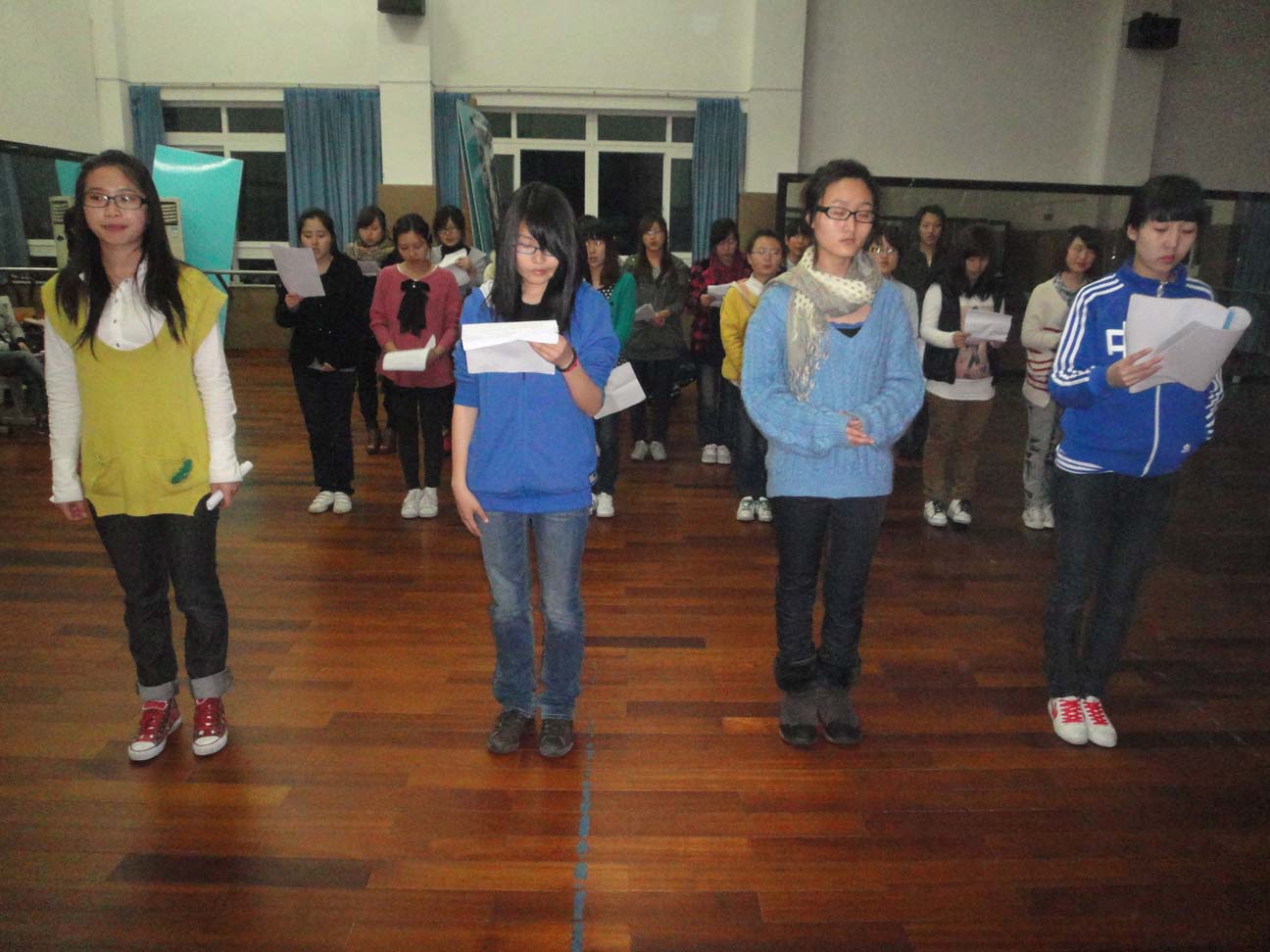 2011年4月8日晚6点,为迎接建党90周年3044am永利集团3044noc大型诗歌朗诵会,在3044am永利集团3044noc南校区2C402进行永利集团官网学子的朗诵排练。在永利集团官网文艺部负责人及干事的组织带领下,我们学院的大一同学踊跃参与、积极配合,李剑军老师也在百忙之中前来察看,大家齐心协力,只为能在第二天的校朗诵比赛中惊艳四座。