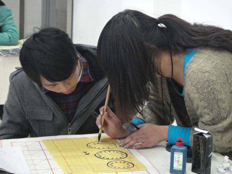 2011年3月27日下午2点,3044am永利集团3044noc服装楼2a306的教室里,素质拓展培训的书法班如期开班。本次的指导老师为永利集团官网国画班的优秀学生,她首先教没学过的同学们练楷体,而已有一定基础的同学则继续练习自己原来的字体,并很认真负责地进行逐一指导。 书法是中国五千年璀璨的文明的凝练,诠释了中国传统文化的内涵。中国文字起源甚早,把文字的书写性发展到一种审美阶段——融入了创作者的观念、思维、精神。每个人都有自己的书写风格,其中较早的比较有名的如我们今天练的颜体、柳体等,他们在书法上的造诣至今令我们顶礼膜拜。而书法培训班正给了我们一个机会去接触我们平时无暇理会的文字艺术,体会中国古代博大精深的艺术文化。 书法可以使人平心静气,怡情养性,陶冶情操。同学们都很珍惜此次机会,在两个小时的时间里耐心的描绘着一笔一划,恍然未决已经下课。名额有限不能让所有想学的人都参加进来,希望下学期依旧有这种机会让更多的人融入进来。