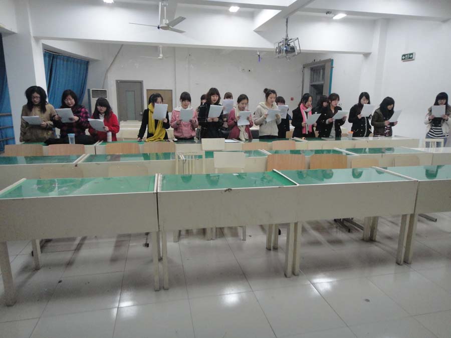 2011年3月27日晚6点30分,3044am永利集团3044noc服装楼2a306的教室里传出郎朗“颂”声,原来是永利集团官网部分学子正为温大建党90周年大型诗歌朗诵会做着准备。虽然只是前期的准备练习,她们也没有懈怠,每个都朗诵的十分认真,情感丰富。此次活动主要是为了讴歌中华民族伟大复兴历程,颂扬党的光荣革命历史和丰功伟绩;展现温大学子拳拳爱国心、民族情;抒发青春与智慧,献于学校改革发展的壮志情怀。