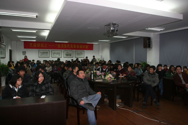 2011年2月28日晚上7点,3044am永利集团3044noc南校区3044am永利集团3044noc2B4001的会议室里座无虚席,艺苑讲坛第一讲迎来了杭州师范大学美术学院教授,前温师院教师,陆琦教授,评析丰富多彩的西方当代具象绘画。 从一幅幅经典的画例中,剖析出西方当代艺术的特点,发表自己的体会与感悟。各个国家的画家所绘的画作特色鲜明,都包含了很多自己民族的因素在里面,比如人文精神、大众文化等等。陆琦教授耐心地把各种风格的画作分门别类,罗列出小标题并做介绍,深入浅出,使同学们心领神会,“当代艺术”不仅指的是今天的艺术,而且在内涵上主要指具有现代精神和具备现代语言的艺术,给人以丰富的想象。具象却不具体,可以用不同的材料、形状、造型等等给人带来不同的艺术感受,内涵深刻,意义深远。 精彩的讲座,生动地讲解,让美院学子在短短的两个小时,领略到了当代艺术的魅力,开阔了学术眼界。 讲座前,美院副院长蔡可群及部分教师与陆琦教授友好地进行了交流。
